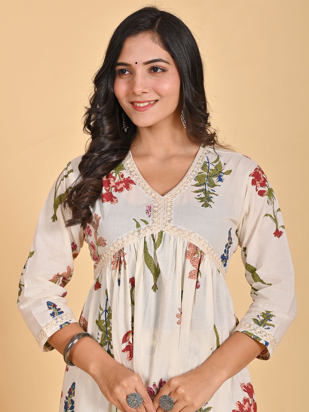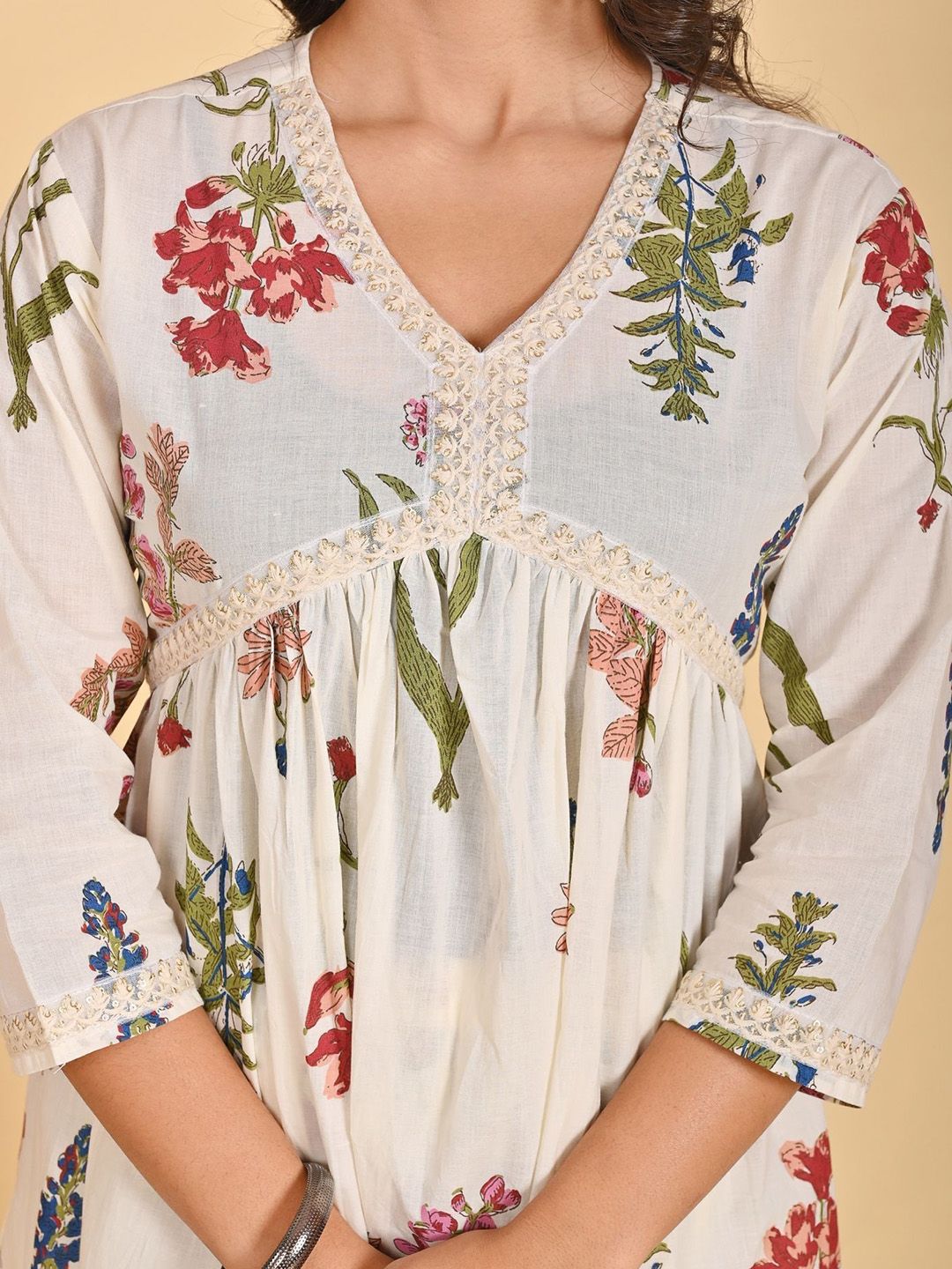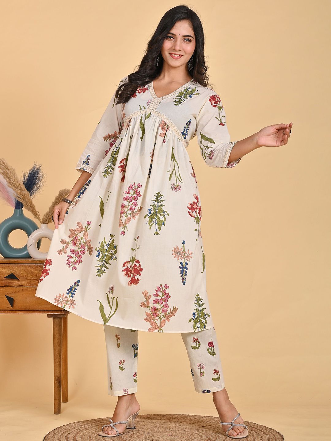 Parth Creation Women Printed Pleated Mukaish Kurta with Trousers
