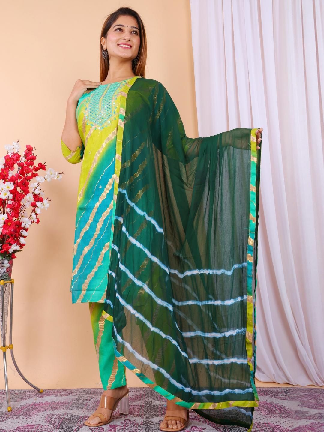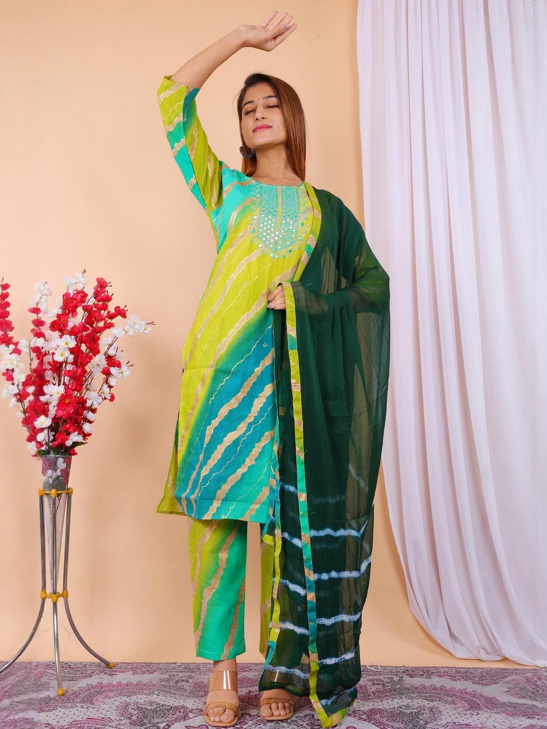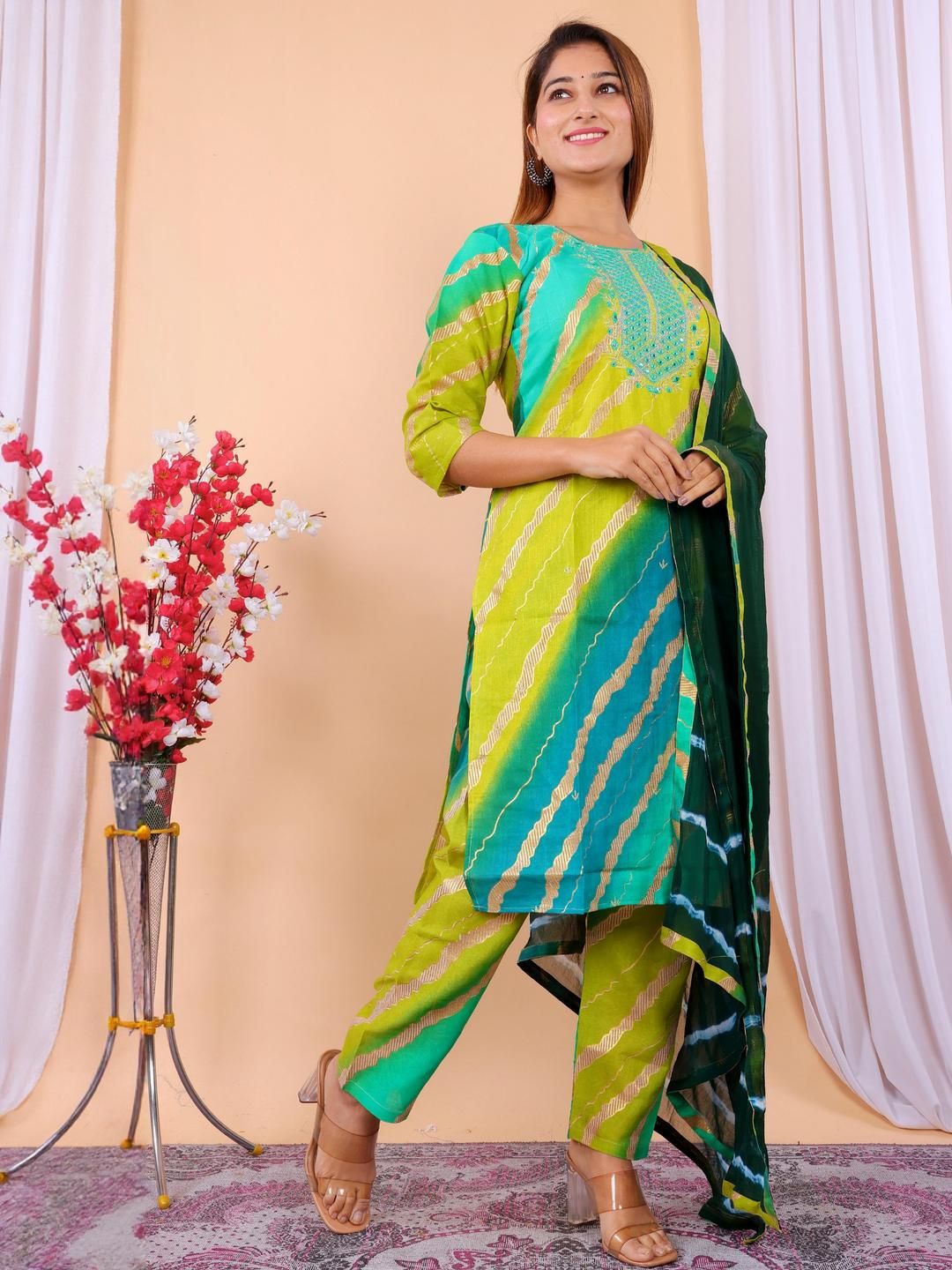 PARTH STYL FASHION Women Green Cotton Blend Kurta Sets