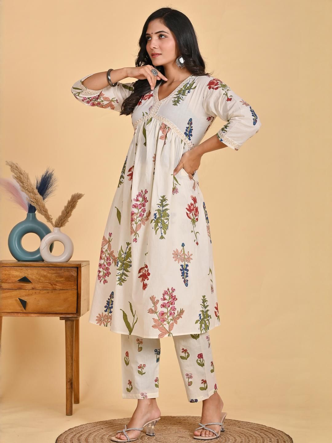 PARTH STYL FASHION Women White Cotton Blend Kurta Sets