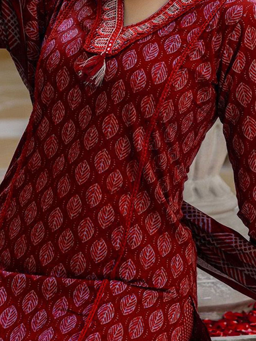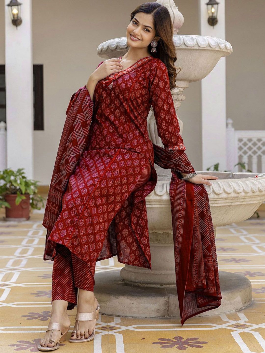PARTHVI Women Ethnic Motifs Printed Cotton Kurta with Trousers & Dupatta