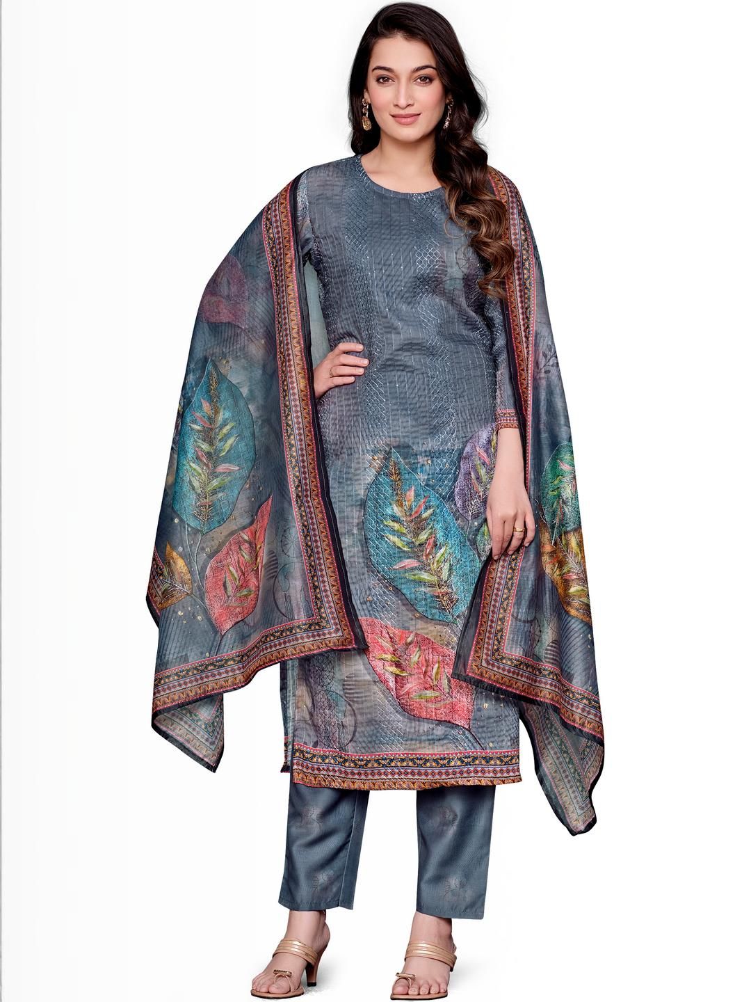 PARVOTSAV Women Floral Printed Empire Kurta with Trousers & With Dupatta