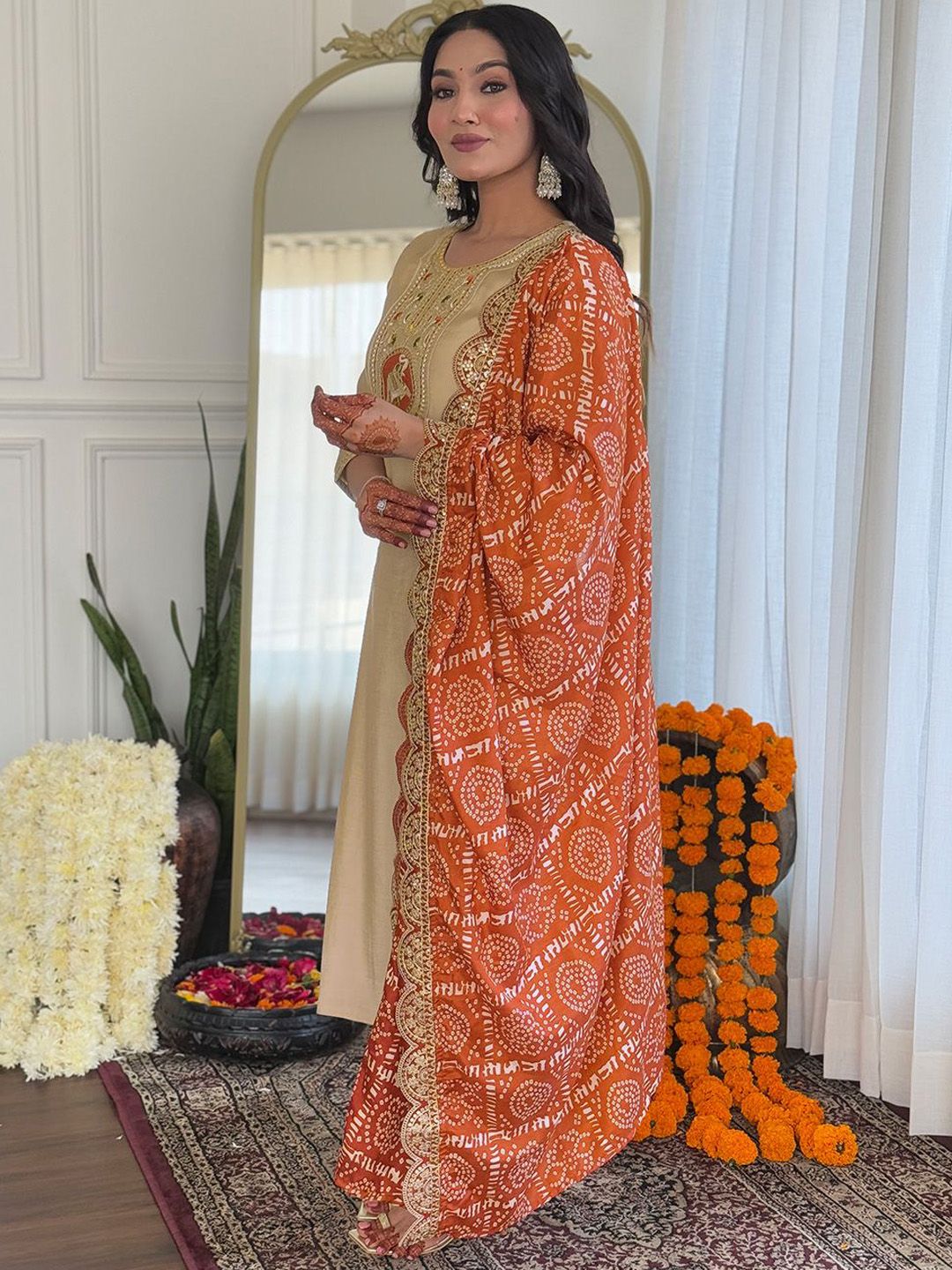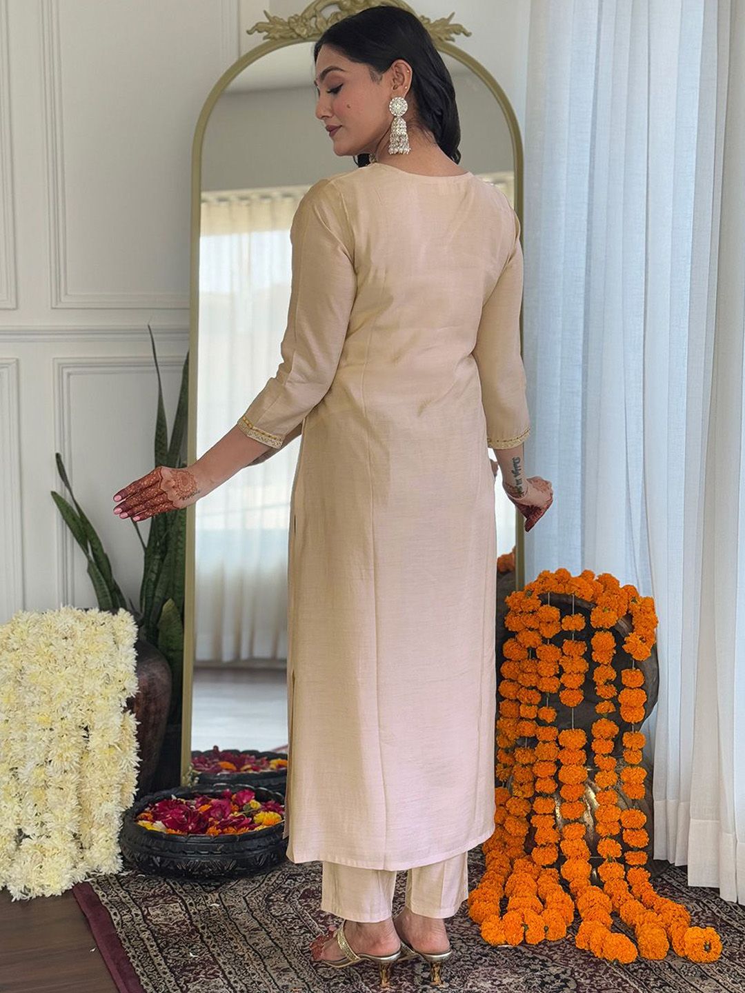 PAYA FASHION Floral Yoke Design Sequinned V-Neck Kurta With Trousers & Dupatta