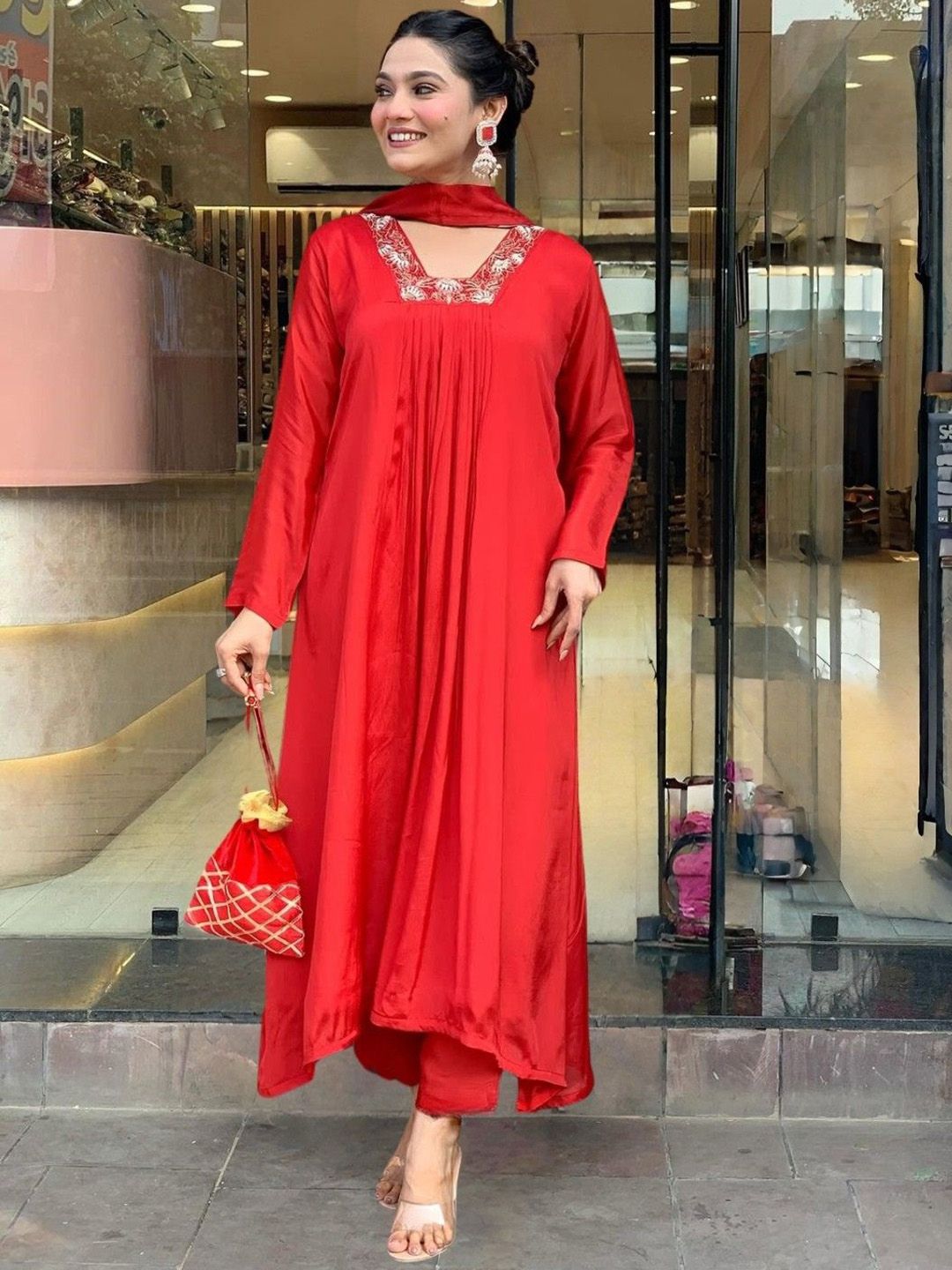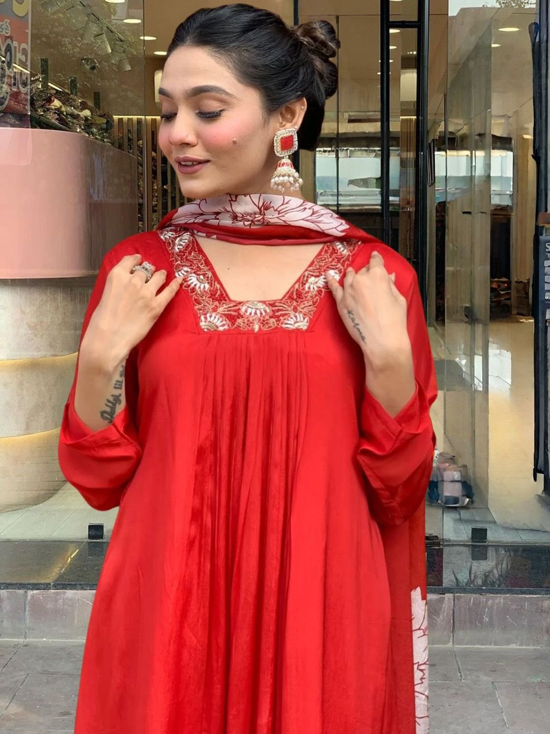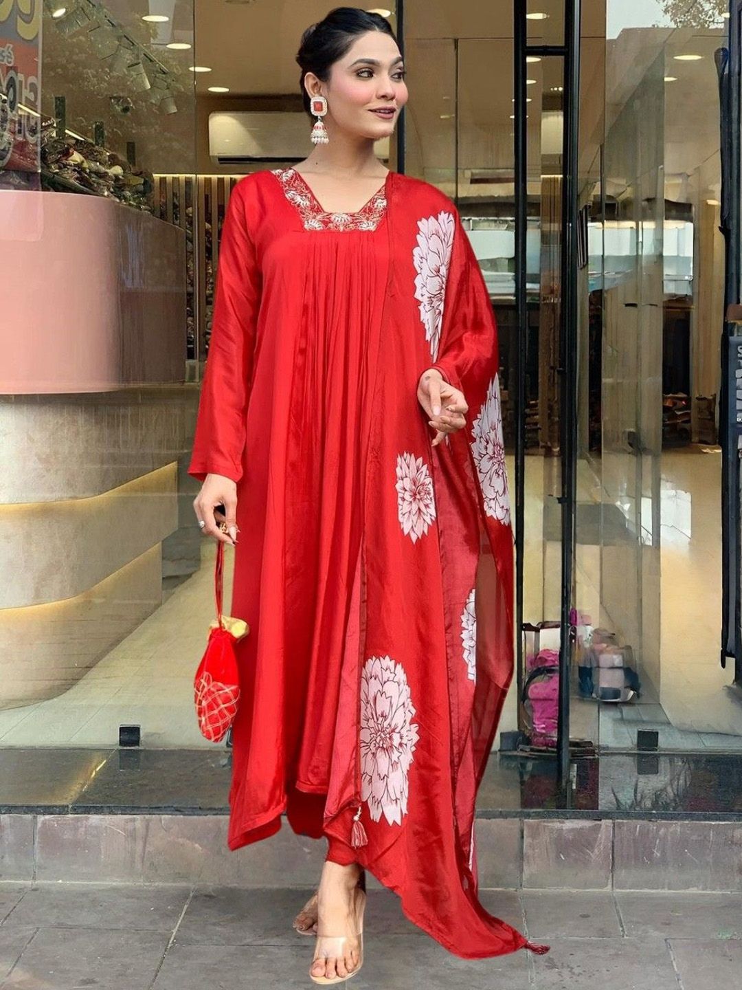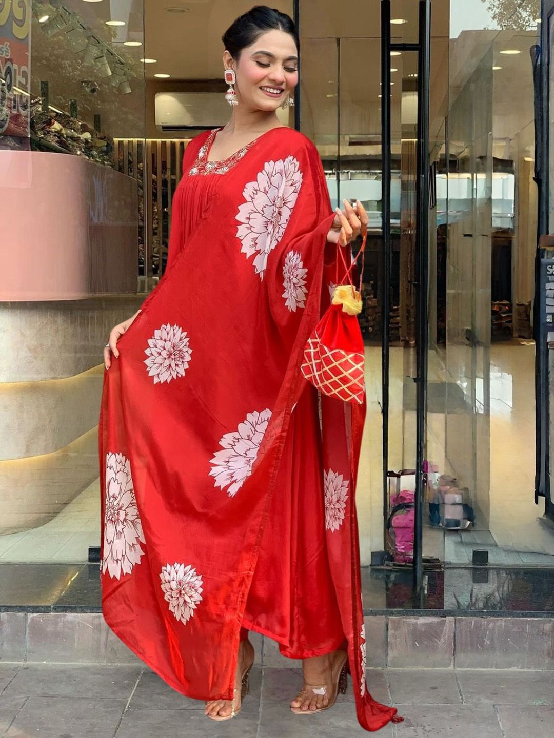 PAYA FASHION Women Floral Printed Anarkali Kurta with Trouser & Dupatta