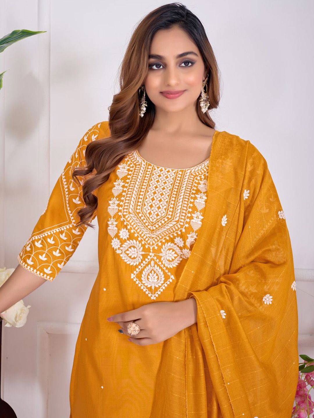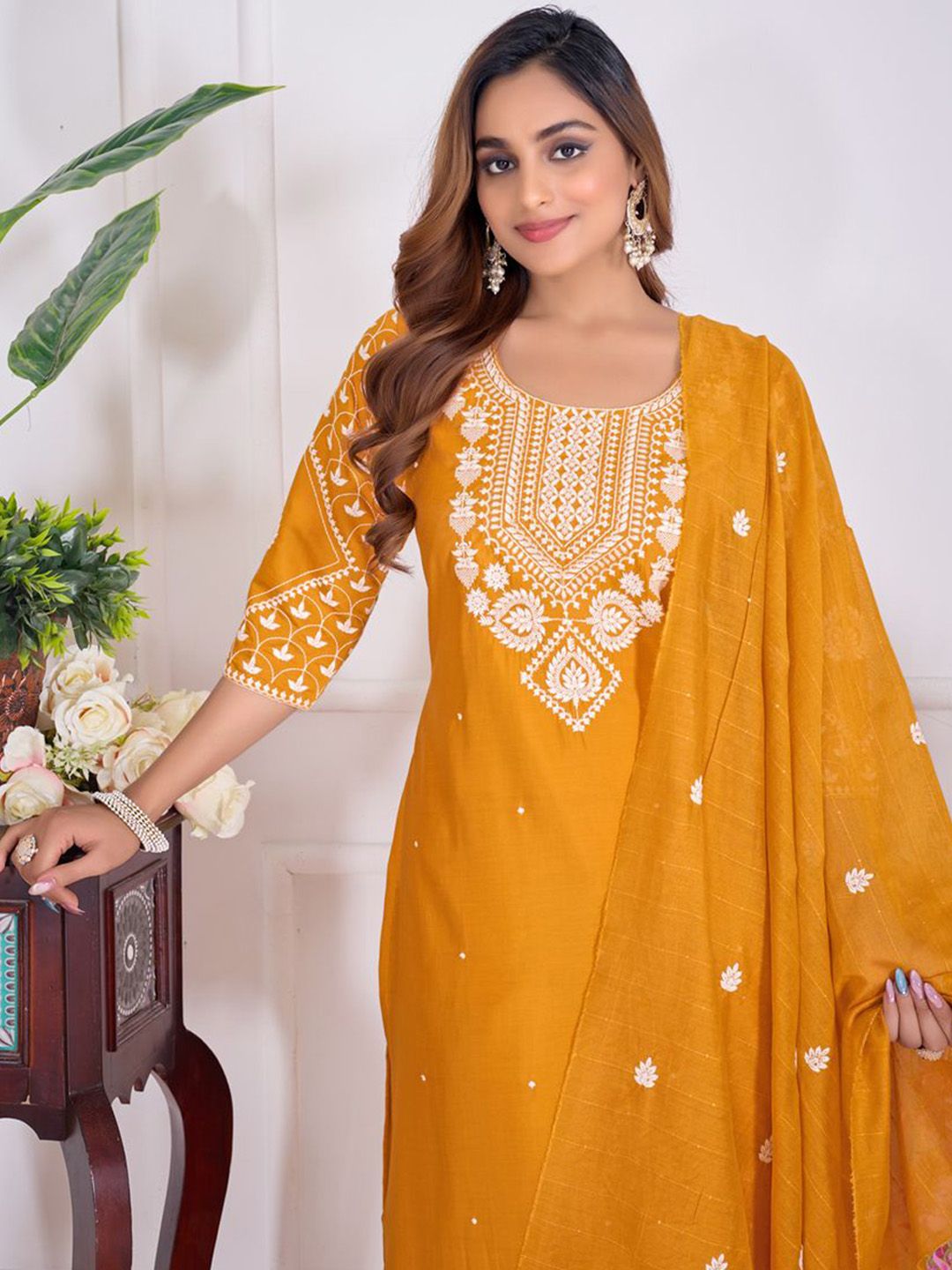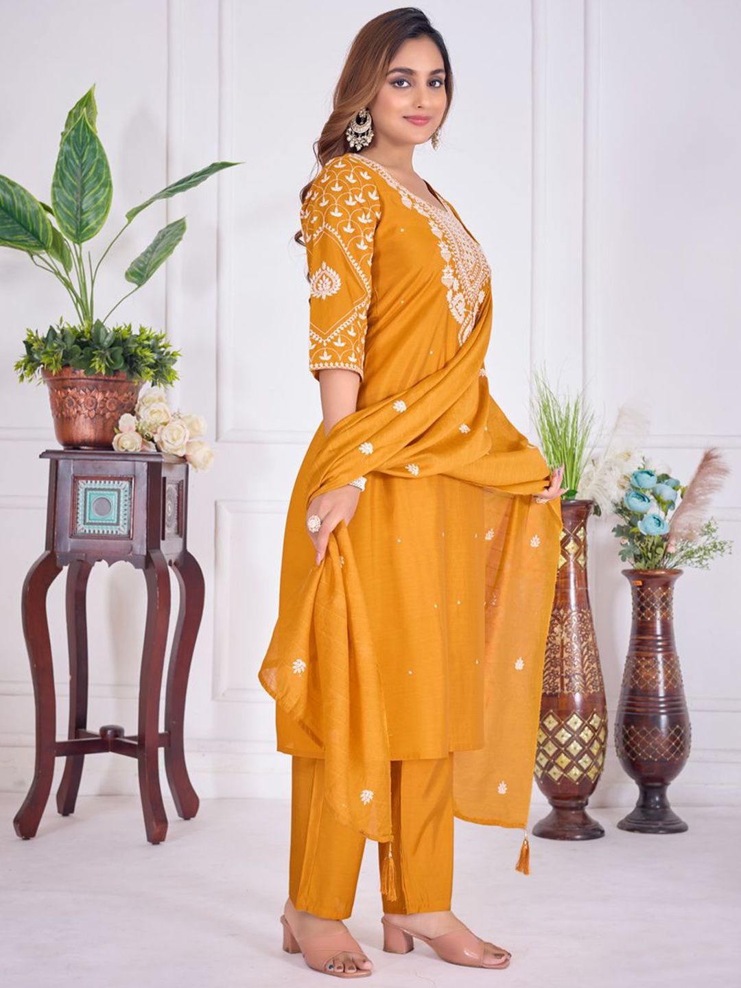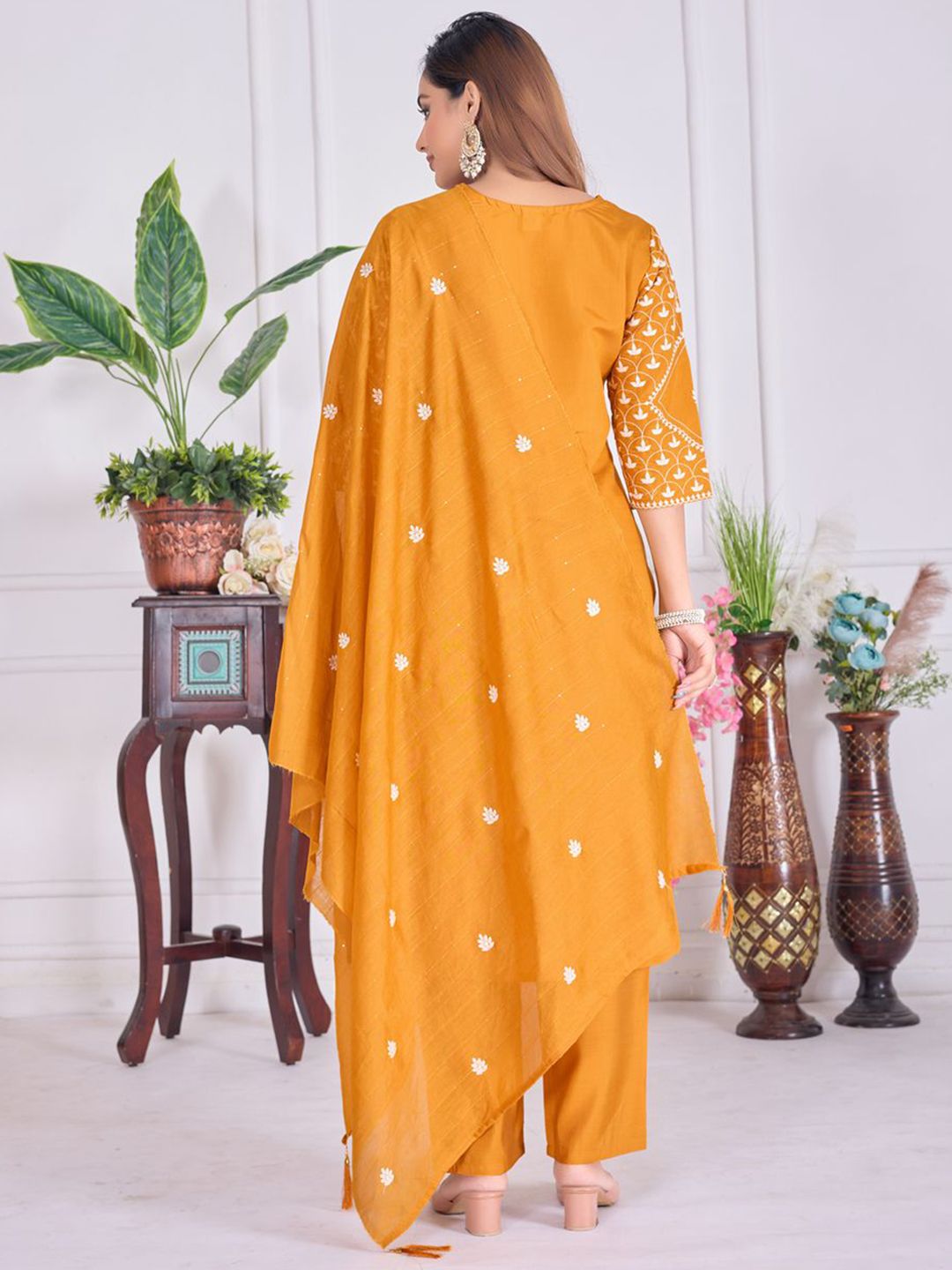 Peach Petals Women Ethnic Motifs Embroidered Pure Cotton Kurta with Trouser & Dupatta