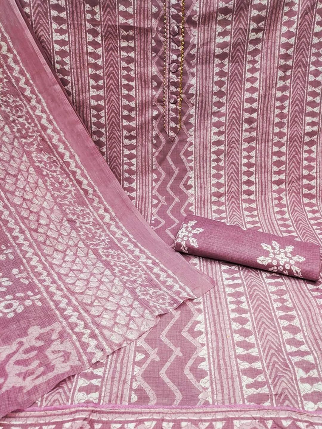Peachmode Purple Printed Gota Work Pure Cotton Unstitched Dress Material