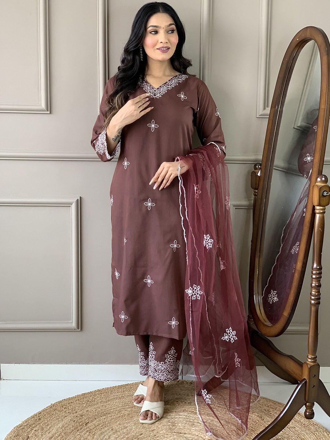 Buy this stylish PEENGAX Women Floral Embroidered Thread Work Pure Cotton Kurta Set With Dupatta at Marincart Nepal. This product offers great quality and value. Perfect for those looking for the latest trends in fashion. Get yours now at unbeatable prices.
