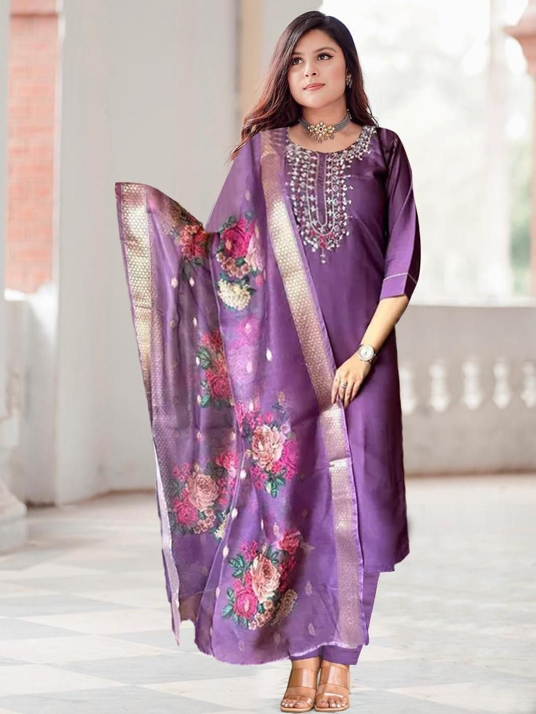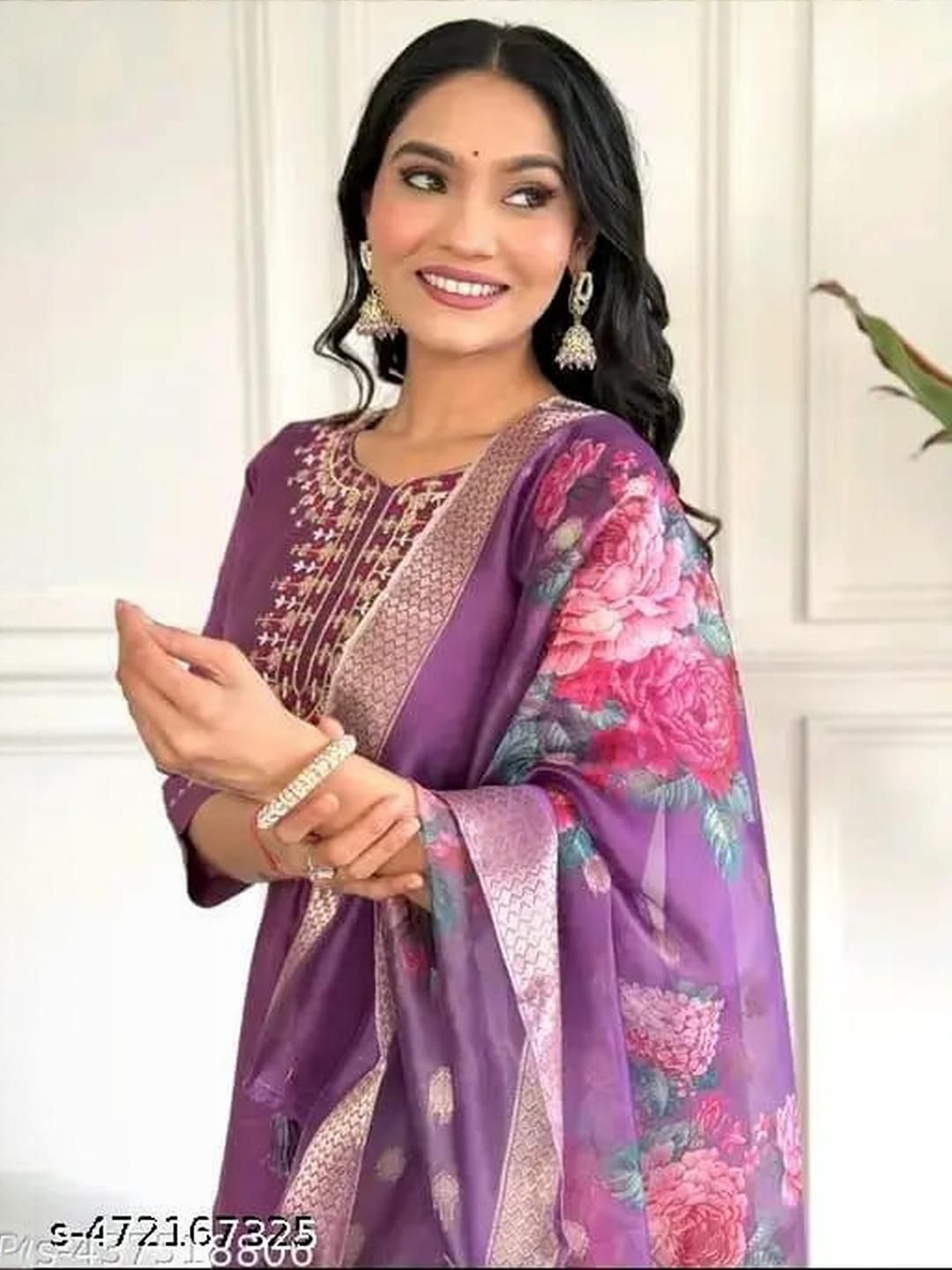 Pelican Hub Women Embroidered Regular Kurta with Trousers & Dupatta