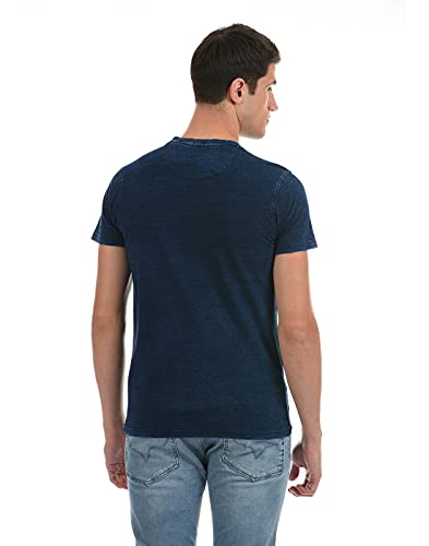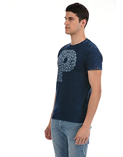 Pepe Jeans Men's Solid Regular fit T-Shirt (PM507641- Indigo L)