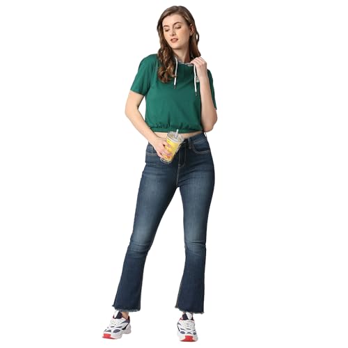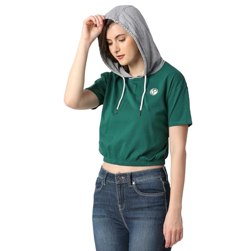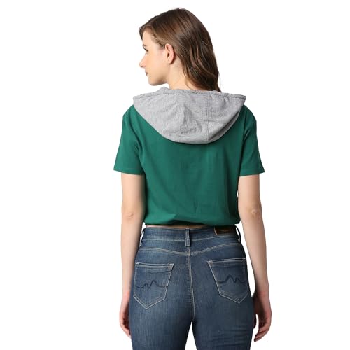 Pepe Jeans Women's Cotton Blend Hooded Neck Regular Fit T-Shirt