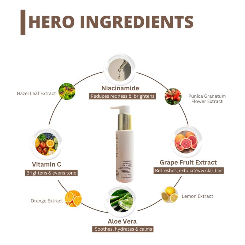 Perenne Sulphate Free Glow Booster Face Wash with Vitamin C and Niacinamide for Men and Women (100 ml) – Face Cleanser Helps to Reduce Tanning, Brighten Skin Tone for All Skin Types
