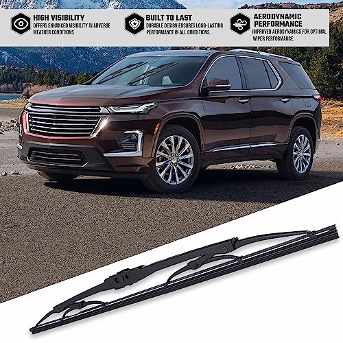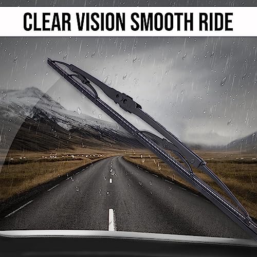 UNIVERSAL COMPATIBILITY - The wiper blade features a universal hook arm design, measuring 1/2" (9mm) in width and 3mm in thickness, ensuring compatibility with a wide range of vehicles. The dimensions of the hook arm make it suitable for most car models, allowing for easy installation and replacement. SECURE ATTACHMENT - To securely attach the wiper blade to your vehicle, simply pull the blade firmly past the locking tabs on the wiper arm. The locking tabs ensure that the wiper blade remains securely in place during operation, providing efficient and reliable wiping performance. PRE-INSTALLED ADAPTER - The pre-installed adapter on the wiper blade eliminates the need for additional adapters, making it compatible. With the pre-installed adapter, you won't have to worry about finding the right adapter for your vehicle, saving time and effort during installation. DURABILITY & PERFORMANCE - The wiper blade is designed using fine-quality materials to ensure durability and long-lasting performance. The wiper blade's construction with top-notch quality materials enhances its resistance to wear and tear, allowing it to withstand various weather conditions and extended use. EASY INSTALLATION - The quick and easy installation process of the wiper blade allows for hassle-free replacement, even for those with minimal automotive maintenance experience. The user-friendly installation method ensures that anyone can replace the wiper blade without the need for special tools or professional assistance.
