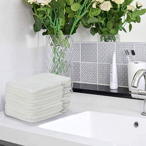 10 Pack Body Wash Mitt: glove mitts are made of microfiber with a loop for easy hanging and drying. Microfiber cloth is lightweight, soft, and absorbent, which is one of the best fabrics to combat moist, perfect for body and face cleansing. Great For Sensitive Skin: the soft body wash mitts is CHEMICAL FREE, suitable for any skin types including sensitive skin, dry or oily skin, even for delicate area like your eyes and lips, NO damage to your face or skin, great for sensitive skin. Easy Care: 40 ? washable, suitable for tumble drying. To keep towels at their best, don’t use bleach, fabric softener, or any other harsh chemicals when washing and always tumble dry by using the "low" setting. Size: 6 x 8 inch/15x21 cm, white and grey, the set of wash mitts is suitable for both babies and adults. Our premium-quality wash mitts stay vibrant and true, uphold their natural edge after months use. Less Waste, Green Life: These body/ face mittens are Machine Washable and Durable. Do not hesitate to choose these reusable and durable make-up remover mittens!