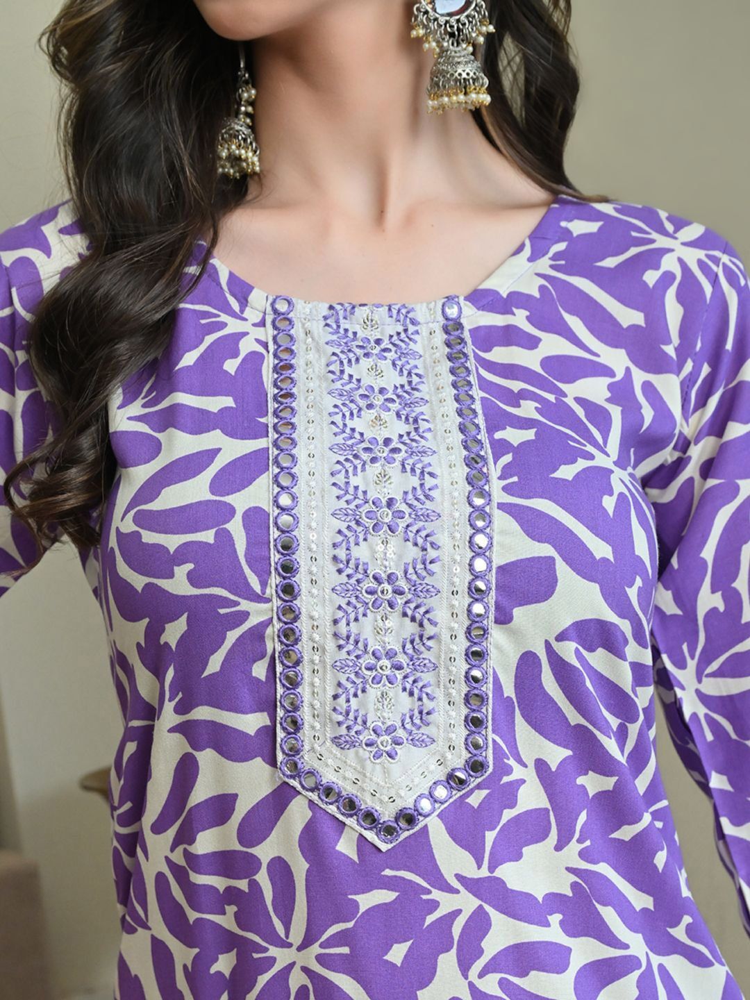PHYSIL Abstract Printed Mirror Work Pure Cotton Straight Kurta With Trousers