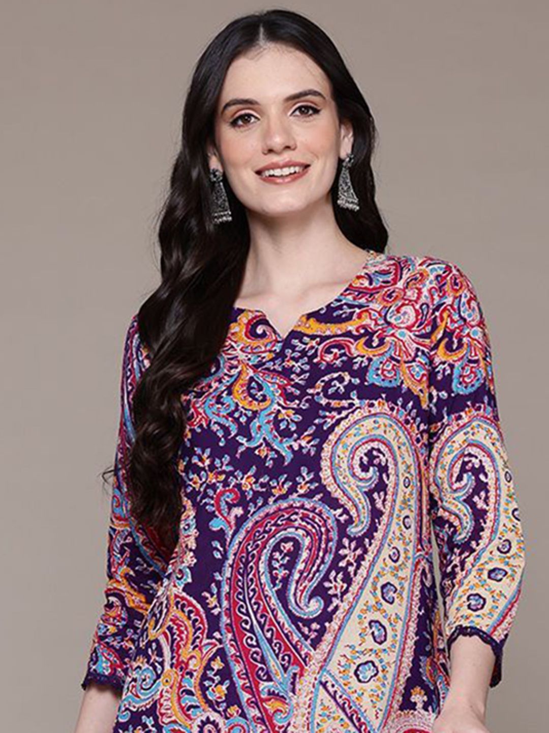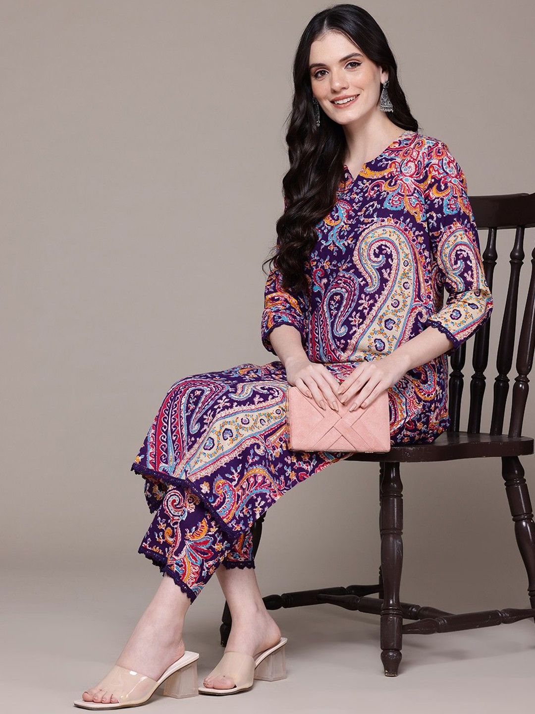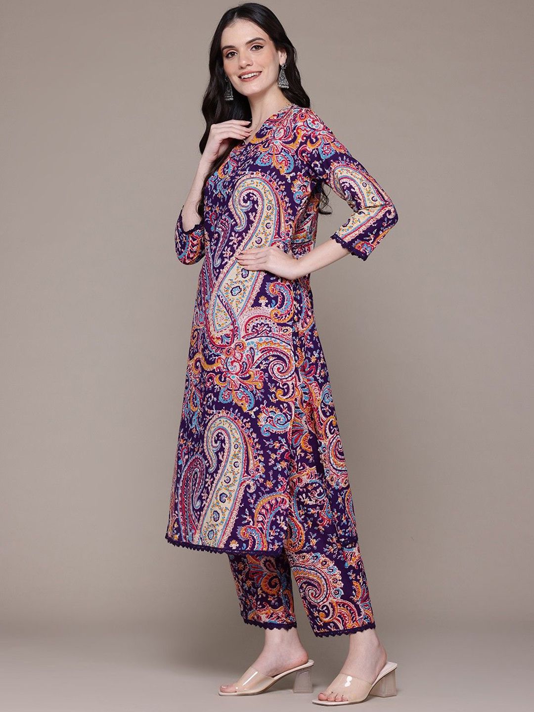 PHYSIL Women Paisley Printed Cotton Kurta with Trousers