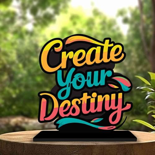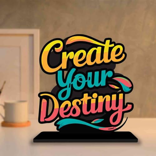 PICKYPOMP Wooden Idols and Figurins Create Your Destiny Motivational Quote Table Decor for Office Desk, Study Table, Living Room, Home Decor Item, Wood Showpieces Decorative Gift - P0052