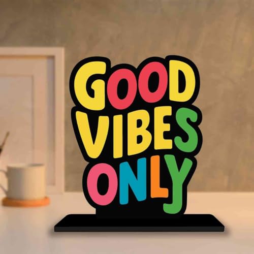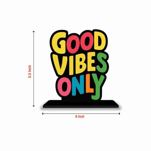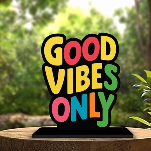 PICKYPOMP Wooden Idols and Figurins Good Vibes Only Motivational Quote Table Decor for Office Desk, Study Table, Living Room, Home Decor Item, Wood Showpieces Decorative Gift - P0037
