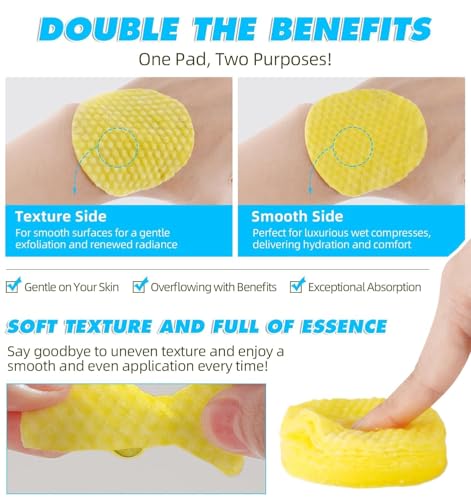 Turmeric & Kojic Acid Cleansing Pads: These pads feature turmeric and kojic acid to help promote a healthy, radiant appearance. They provide exfoliating, brightening, and moisturizing benefits, leaving your skin feeling smooth, refreshed, and glowing. Deep Cleansing for a Fresh Complexion: Effectively removes dirt, oil, dead skin cells, and makeup, helping to maintain a clean and balanced look. These pads also support tightening pores and reduce the appearance of excess oil. Exfoliating for Smoother Skin: Gently exfoliates to refine skin texture, helping to reduce pigmentation and promote a more even, bright complexion. Suitable for All Skin Types: The gentle formula is non-irritating and provides soothing and moisturizing benefits for all skin types, leaving skin feeling refreshed and cared for. Convenient Daily Routine: With 40 pre-soaked cleansing pads per pack, these cleansing pads offer a travel-friendly, easy way to keep your skin clean, smooth, and refreshed every day.