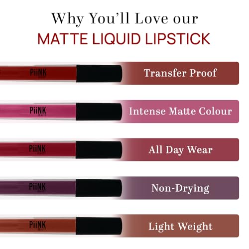 PiiNK Beauty Liquid Matte Lipstick | Lightweight & Transferproof | Water & Smudge Proof | Highly Pigmented (Rose Taupe, 4 ML)
