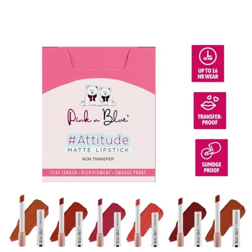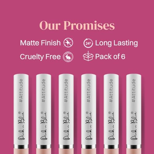 PINK N BLUE® | #Attitude Matte Lipstick Box | Set of 6 Shades for Confident Looks | Non-Transfer | Kiss Proof | Smudge Proof |