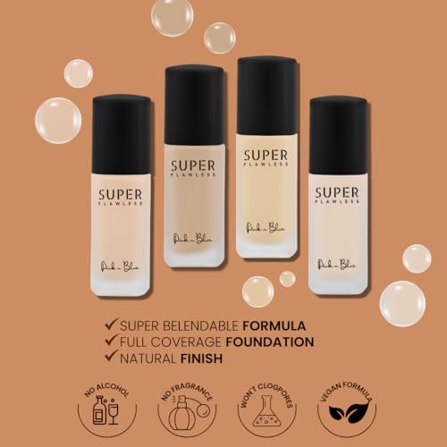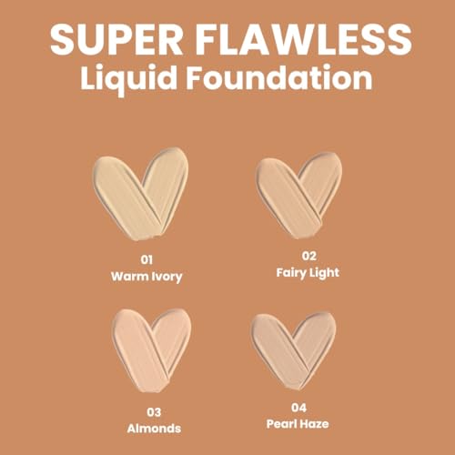 PINK N BLUE® Super Flawless Liquid Foundation Full Coverage Lotion, Matte Finish, With Spf, Absorbs Oil | Poreless, Long Lasting MakeUp | 45ml | Warm Ivory 01