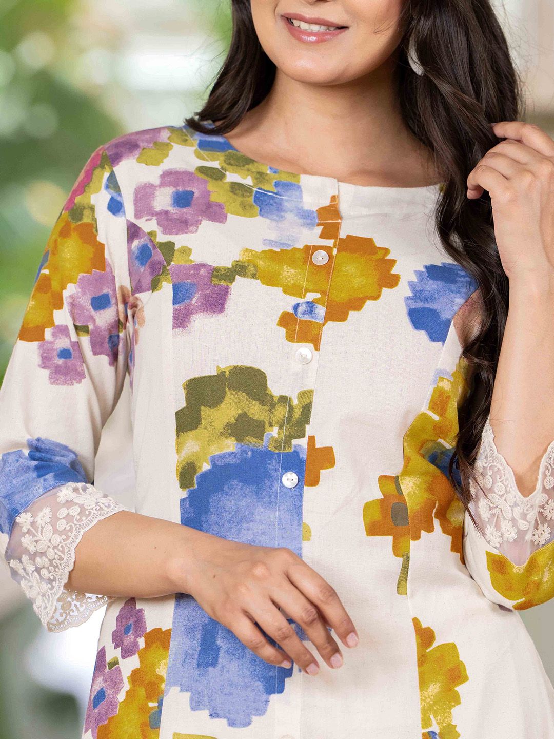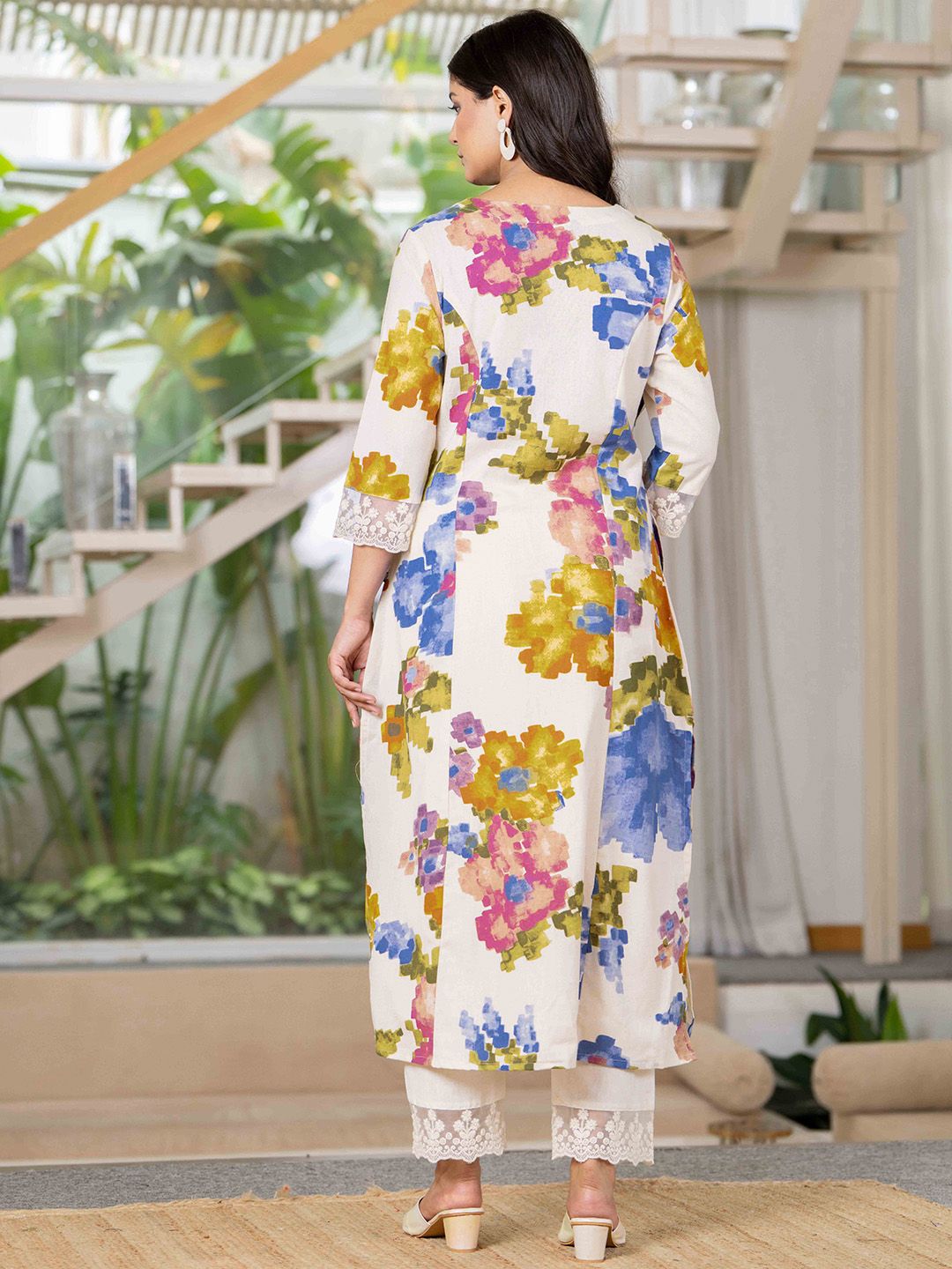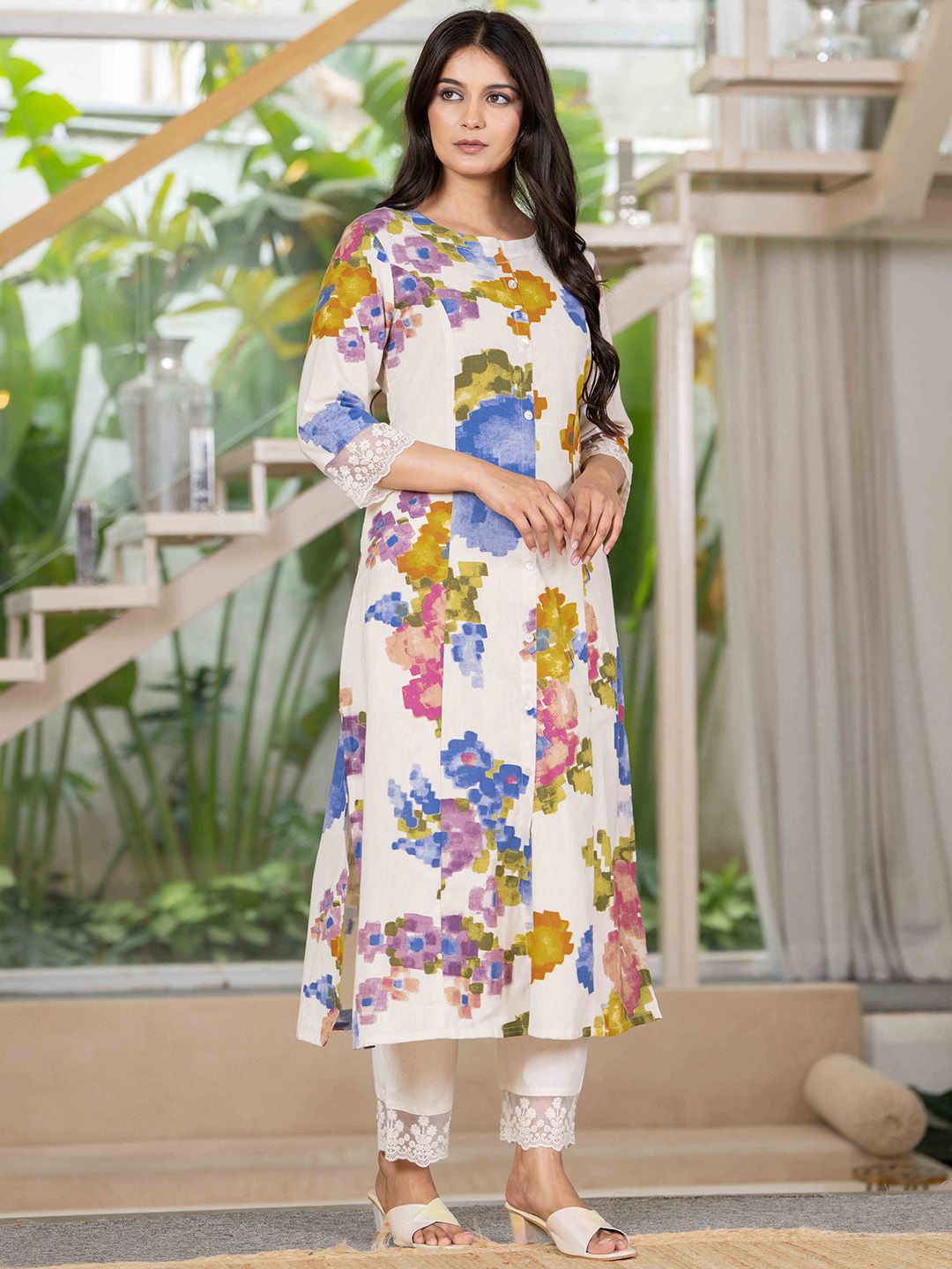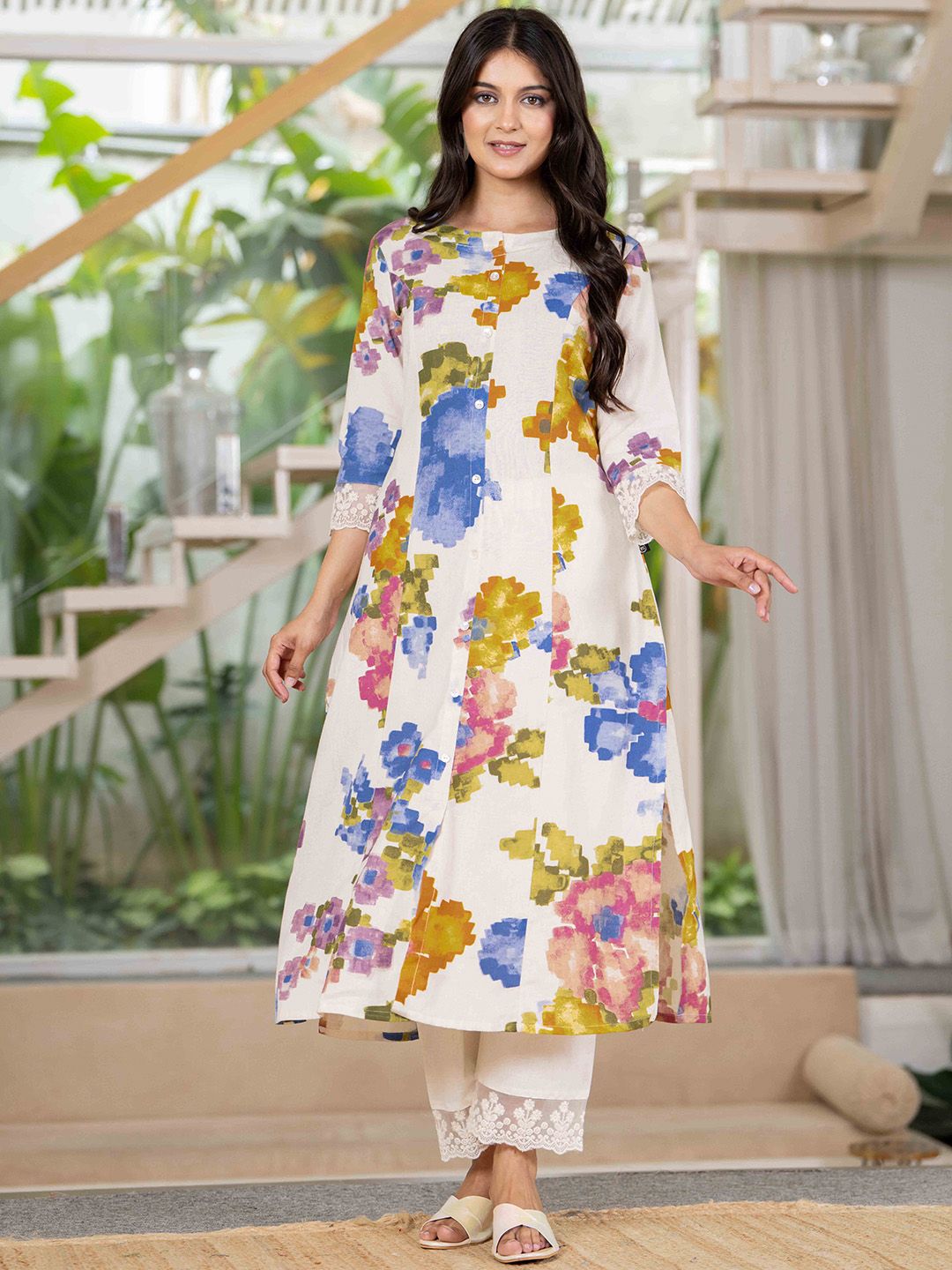 Pistaa Abstract Printed Pure Cotton A-Line Kurta With Trousers