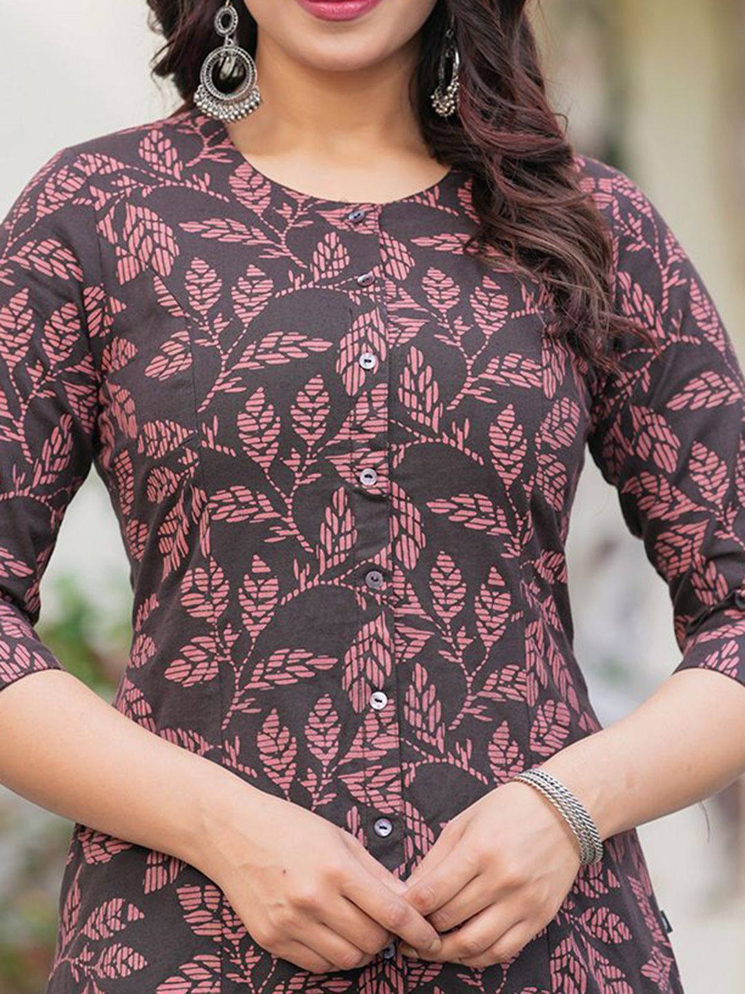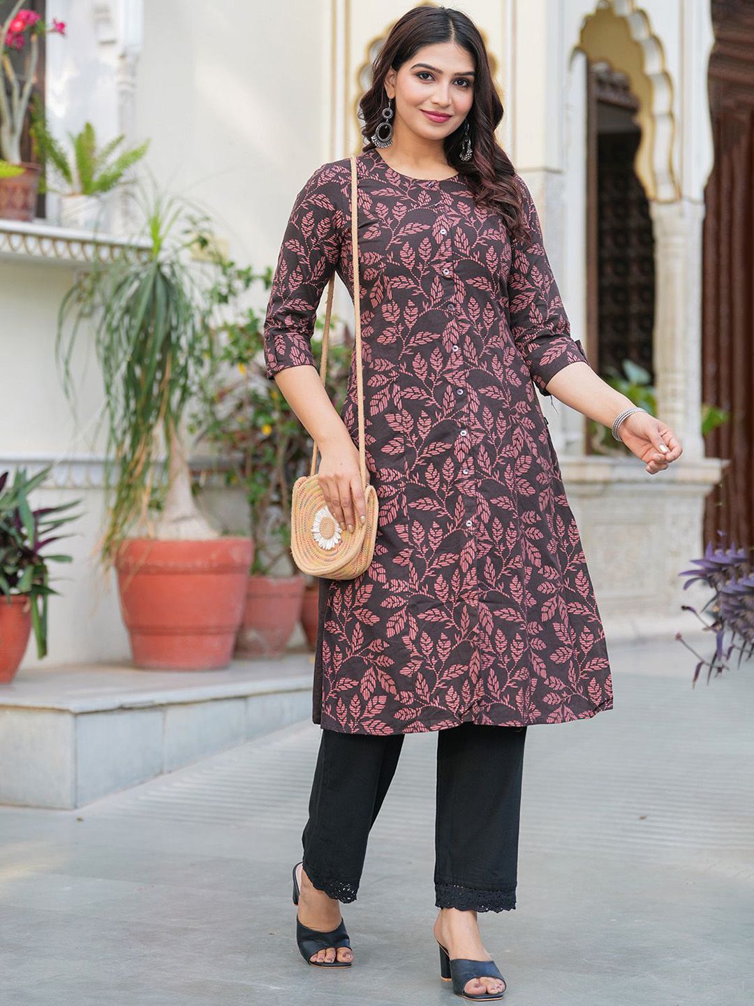 Pistaa Floral Printed Straight Pure Cotton Kurta With Trousers