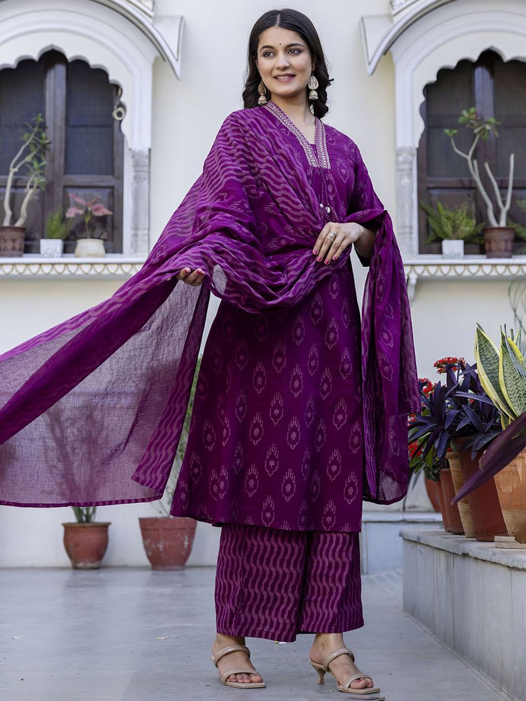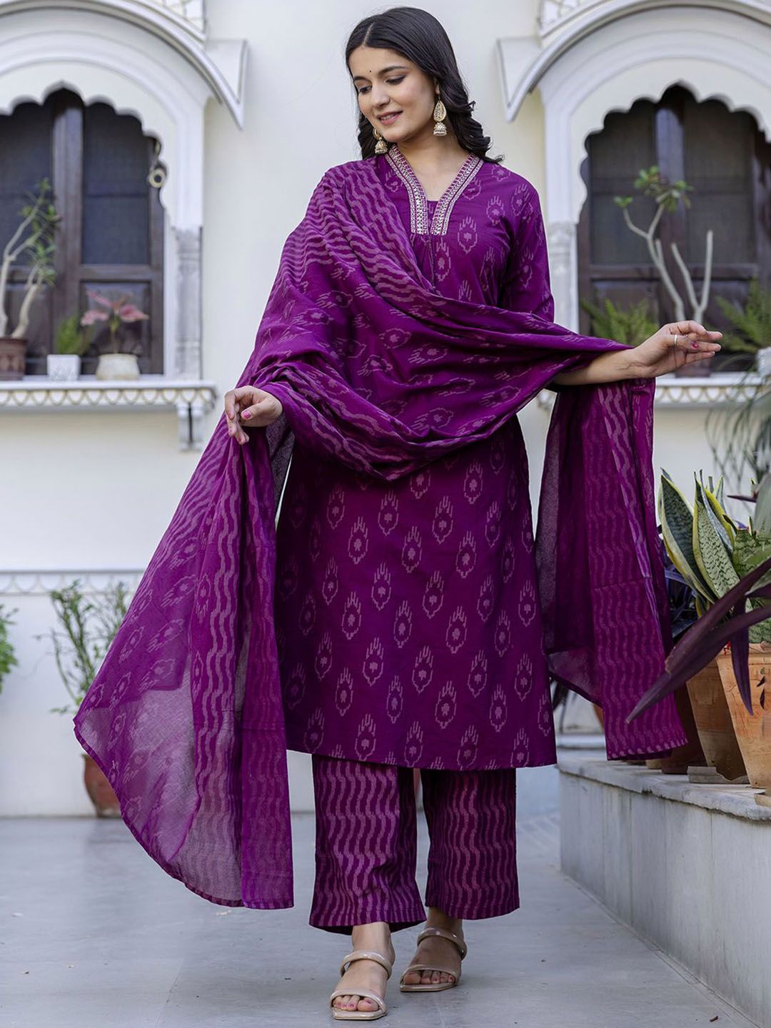 Buy this stylish Pistaa Geometric Printed V-Neck Pure Cotton A-Line Kurta With Palazzos And Dupatta at Marincart Nepal. This product offers great quality and value. Perfect for those looking for the latest trends in fashion. Get yours now at unbeatable prices.