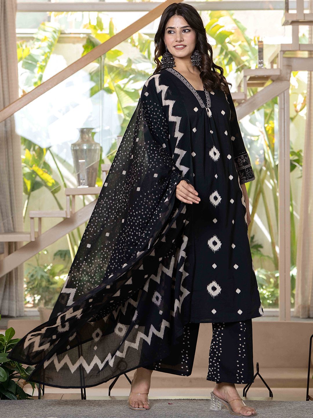 Pistaa Women Ethnic Motifs Printed Pure Cotton Kurta with Palazzos & With Dupatta