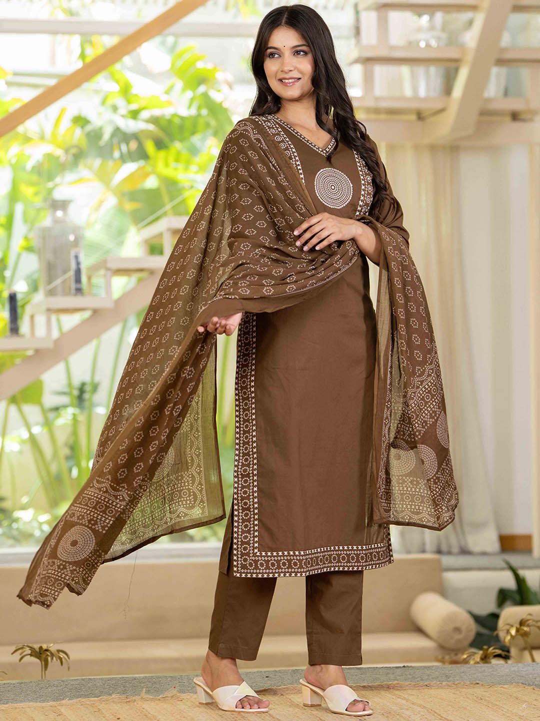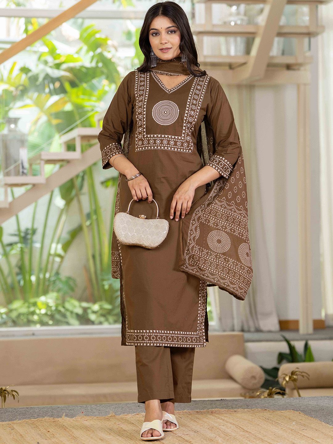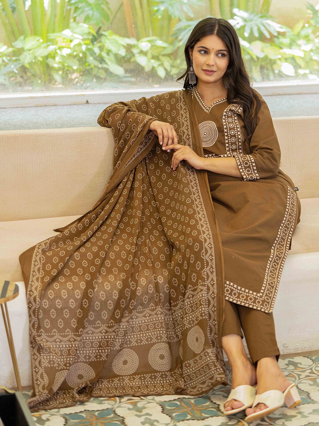 Pistaa Women Ethnic Motifs Printed Pure Cotton Kurta with Trouser & Dupatta
