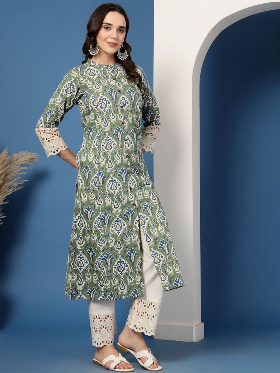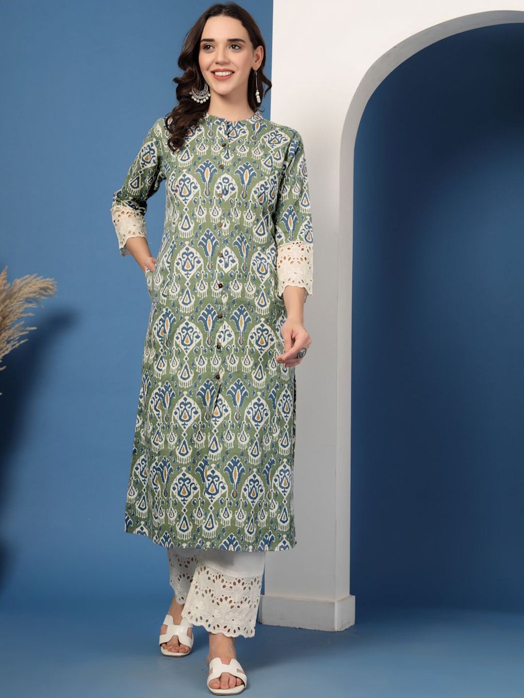 Pistaa Women Ethnic Motifs Printed Regular Pure Cotton Kurta with Palazzos