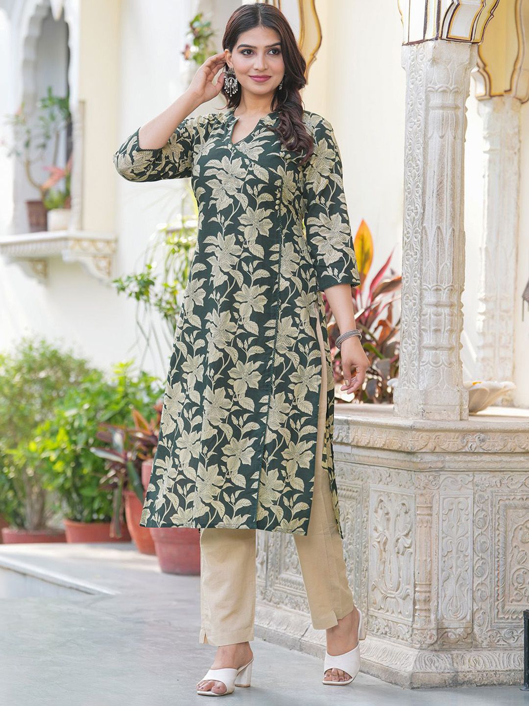Pistaa Women Floral Printed Regular Pure Cotton Kurta with Trousers