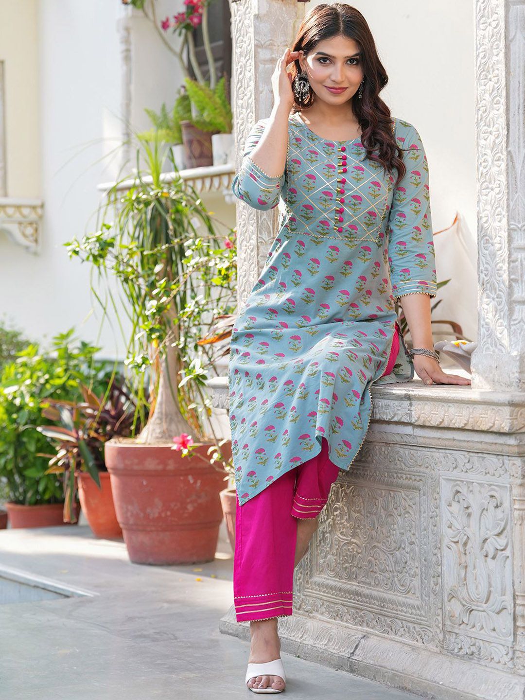 Buy this stylish Pistaa Women Floral Printed Regular Pure Cotton Kurta with Trousers Kurta Sets at Marincart Nepal. This product offers great quality and value. Perfect for those looking for the latest trends in fashion. Get yours now at unbeatable prices.