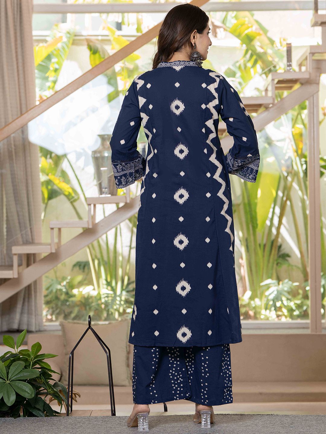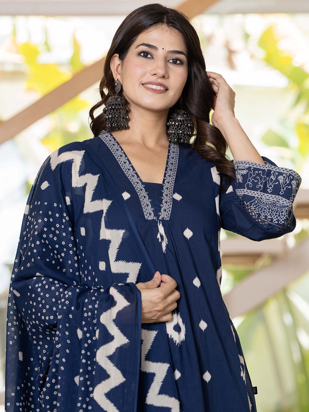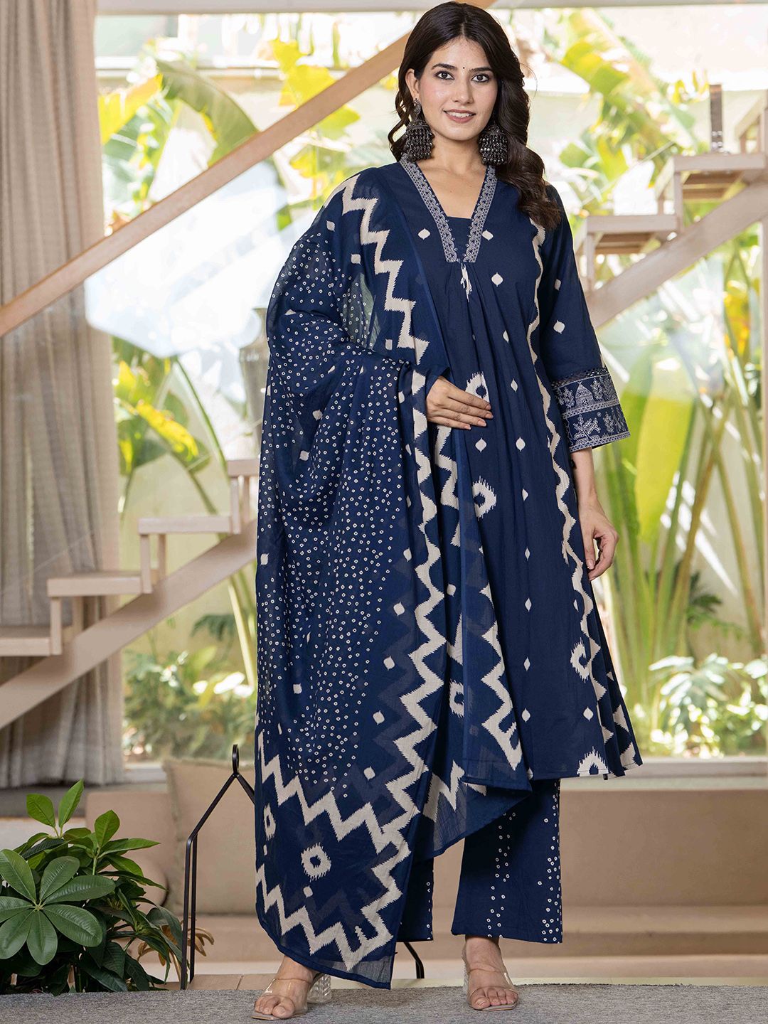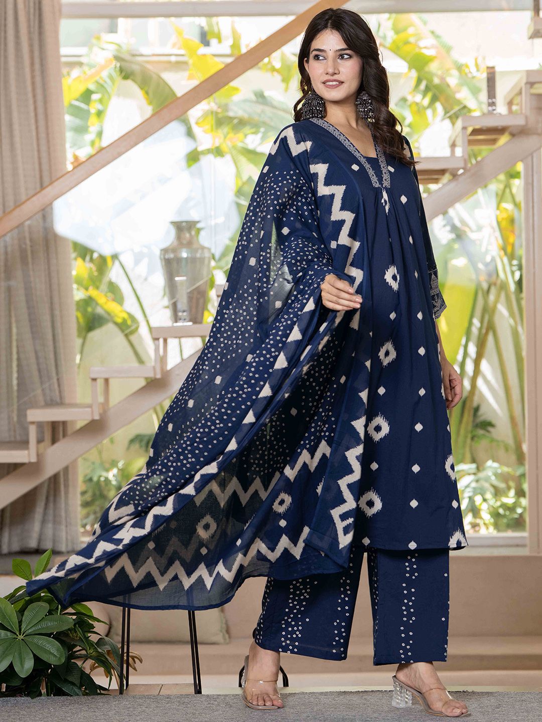 Pistaa Women Geometric Printed Pure Cotton A-Line Kurta with Palazzos & Dupatta