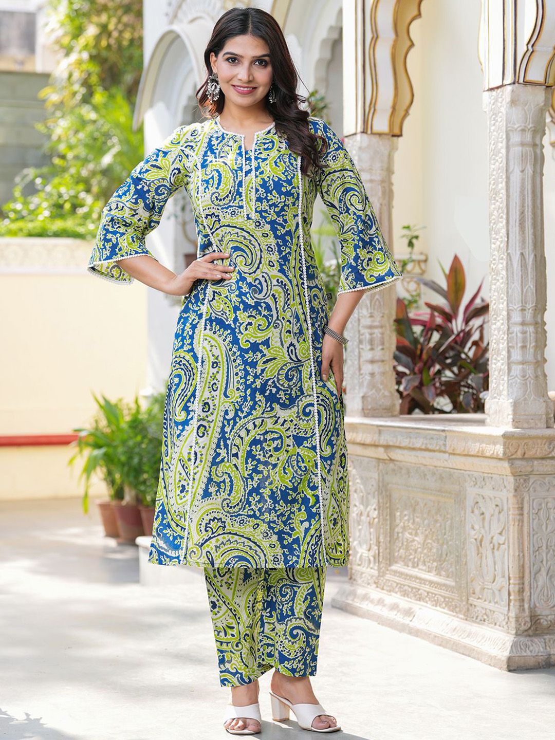 Pistaa Women Paisley Printed Regular Pure Cotton Kurta with Trousers Kurta Sets