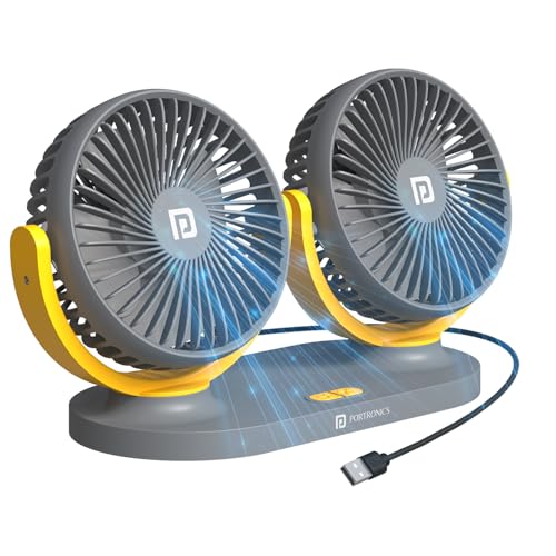 Portronics Twin Cool Dual Head Portable USB Powered Fan With 360° Rotatable Head, 3 Speed Control, Ultra Silent Operation, Brushless Motor, Suitable For 12/24V Car,SUV,Bus,Desk,Home Fan (Grey)