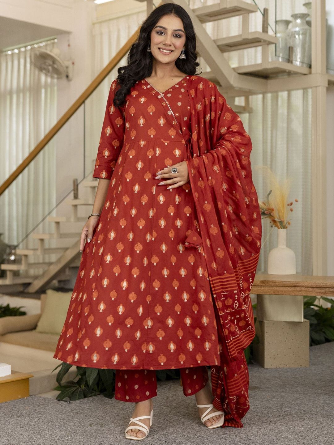 POSHART FASHION AS UNIQUE AS YOU ARE Printed Pure Cotton Kurta With Trousers & Dupatta