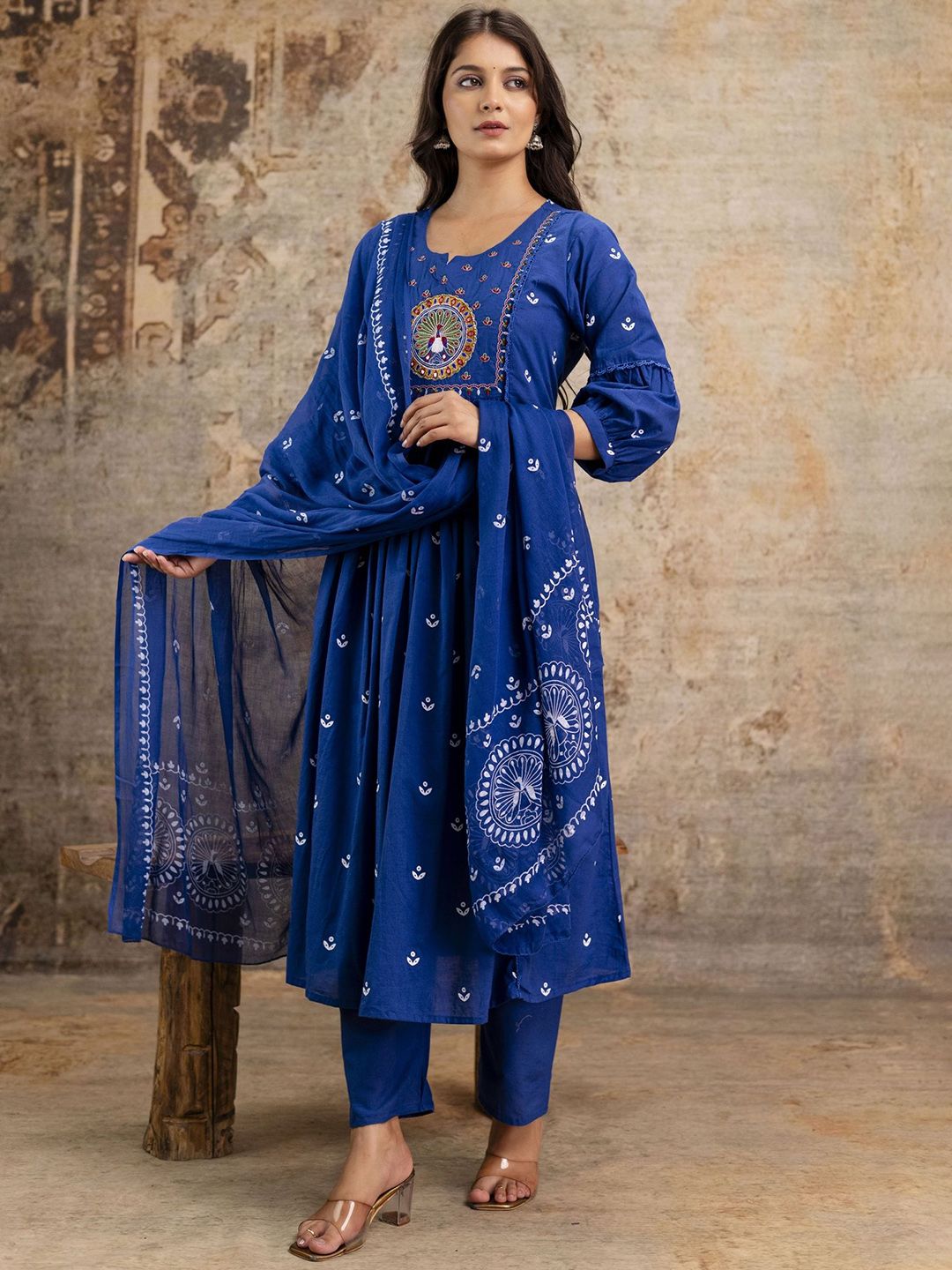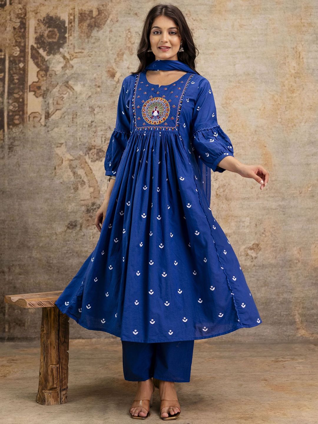 POSHART FASHION AS UNIQUE AS YOU ARE Women Embroidered Cotton Kurta Set With Dupatta
