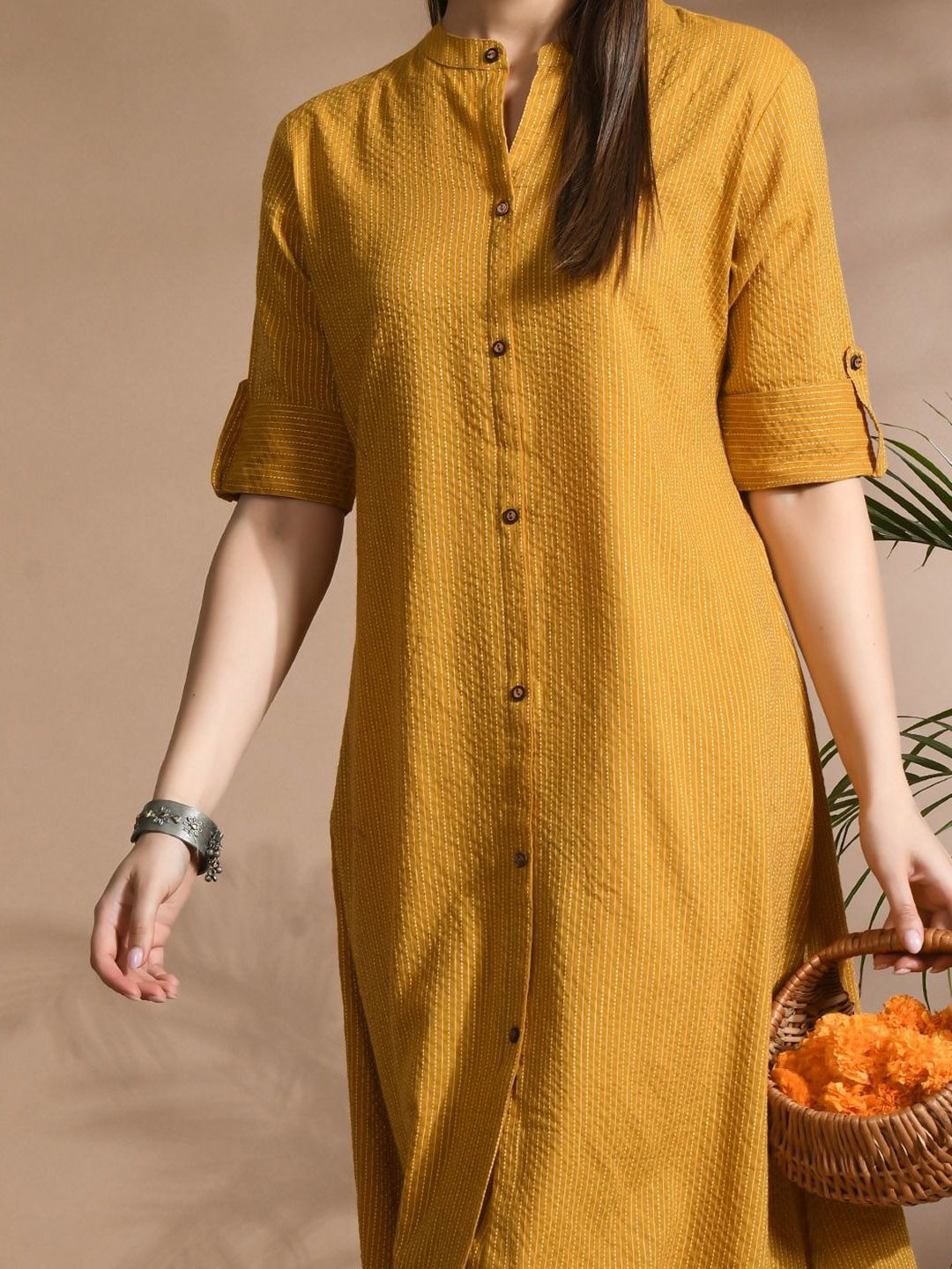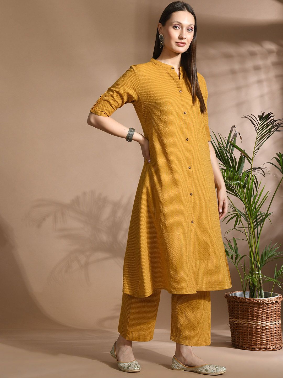 PPAPITA Women Textured Cotton A-Line Kurta with Trousers