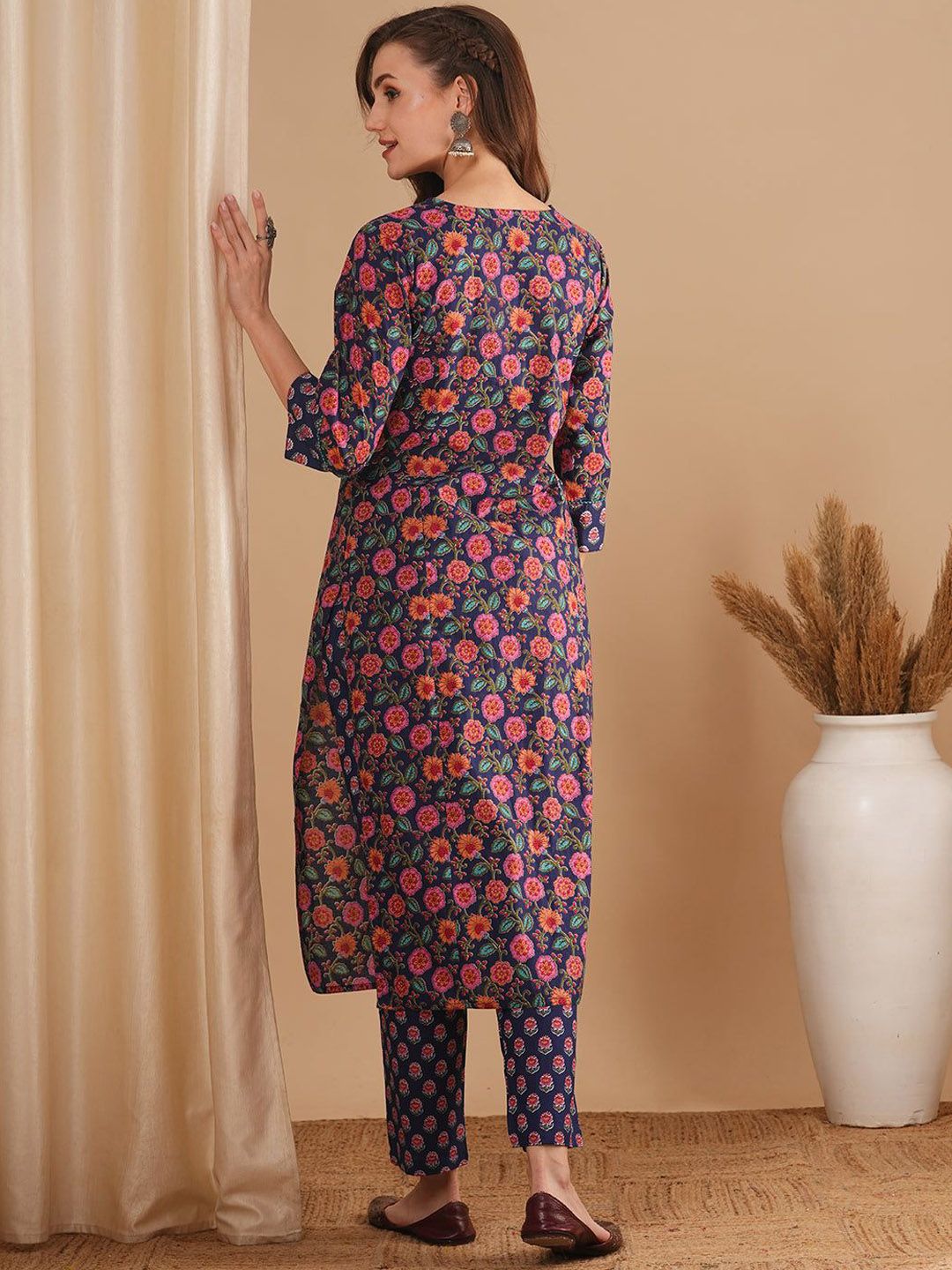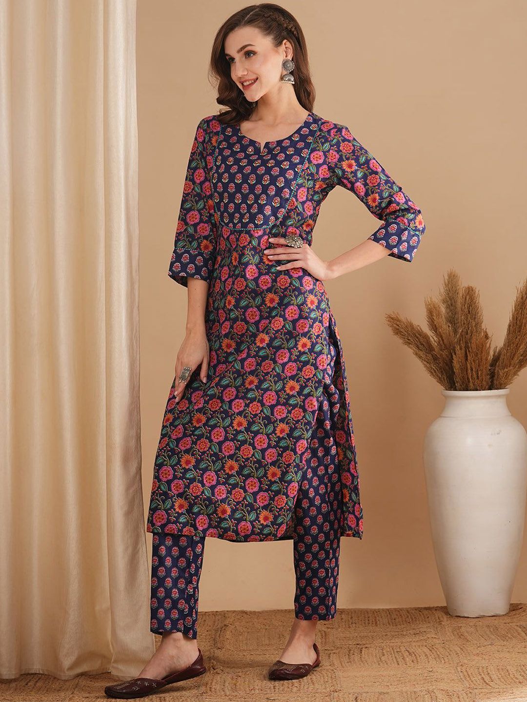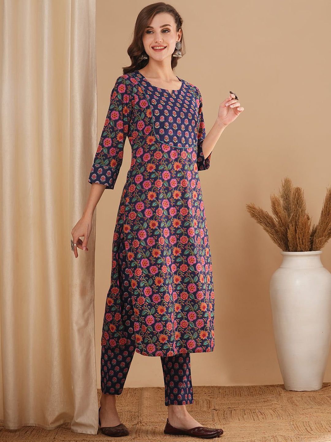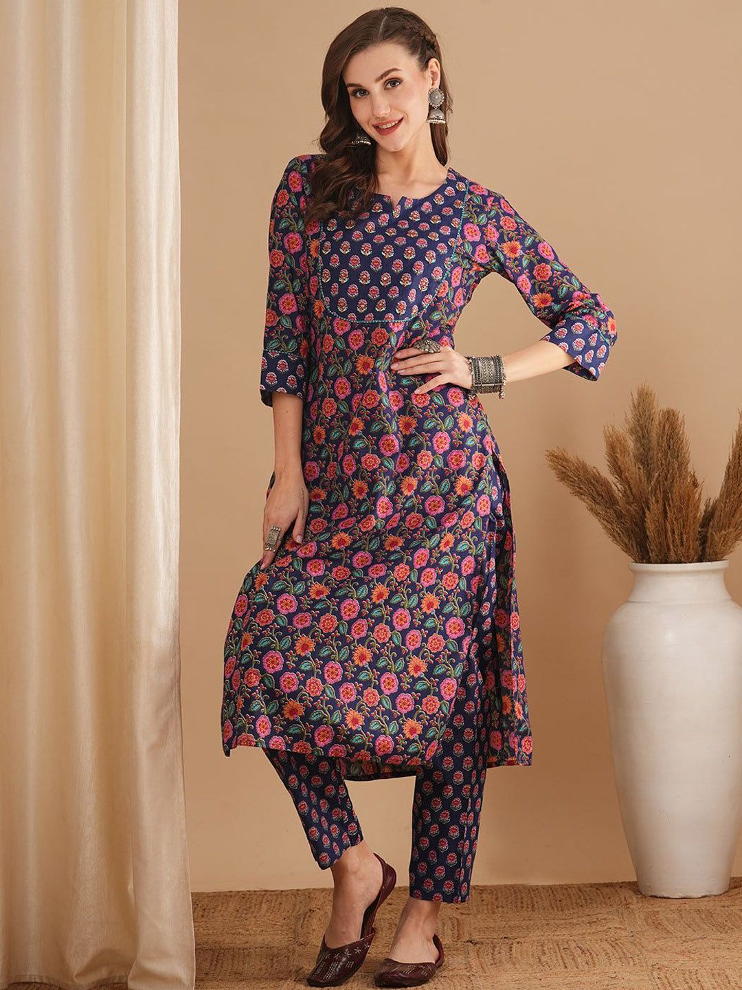PRISCA Floral Printed Pure Cotton Straight Kurta With Trouser