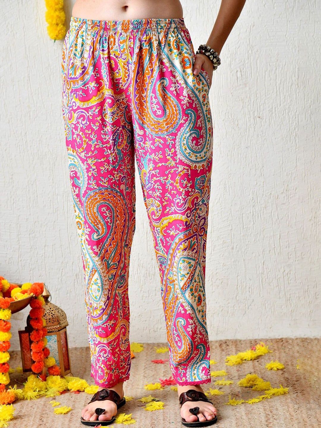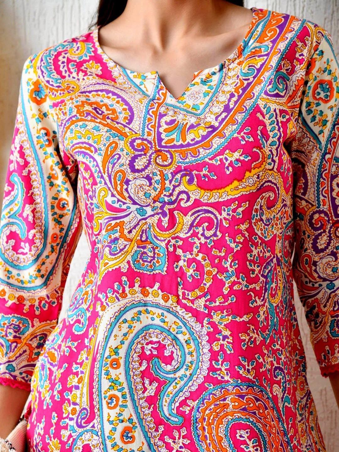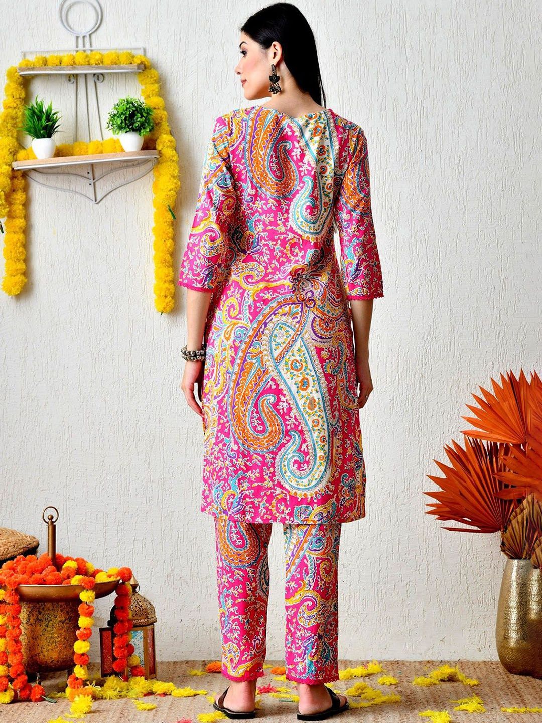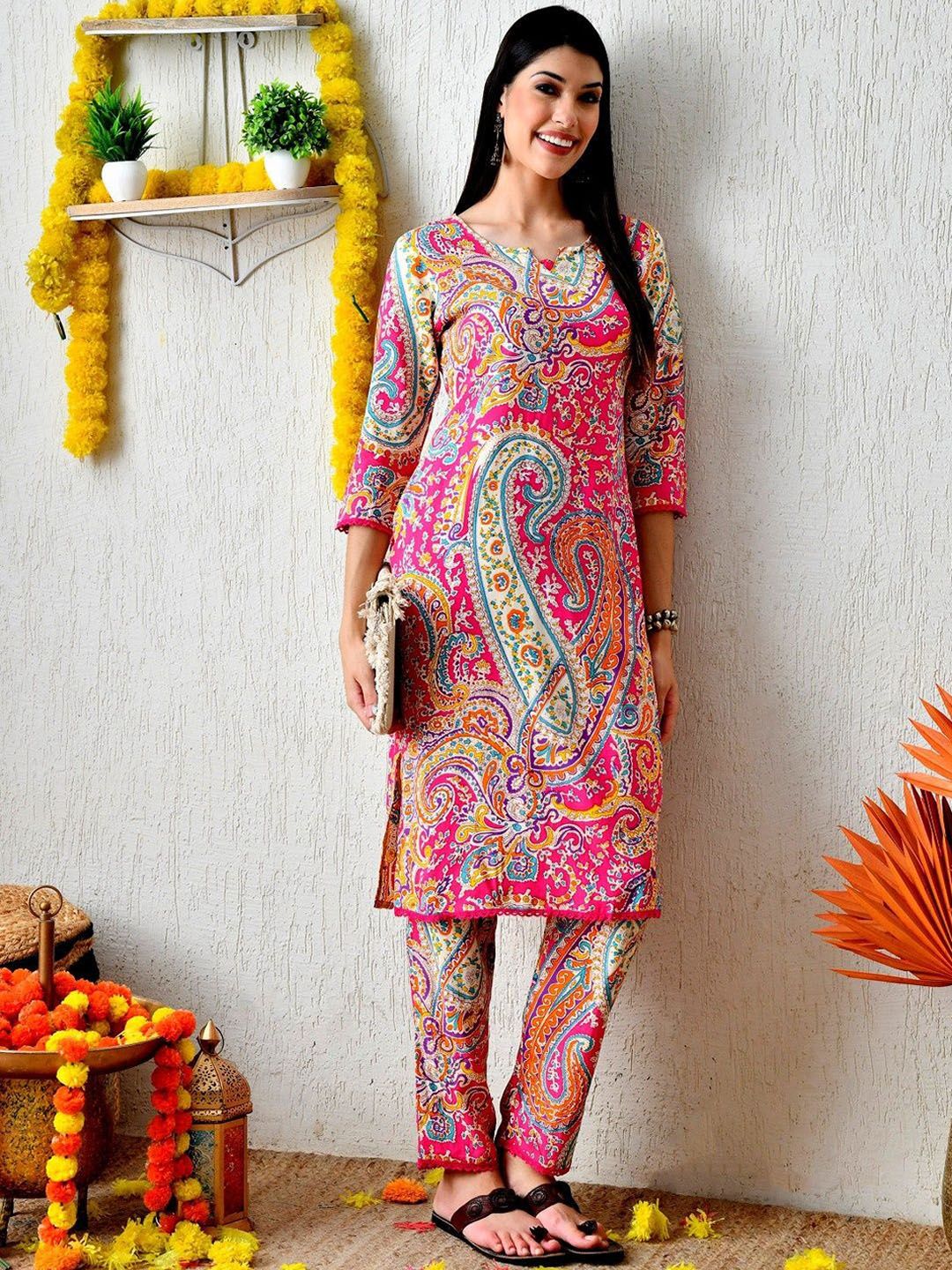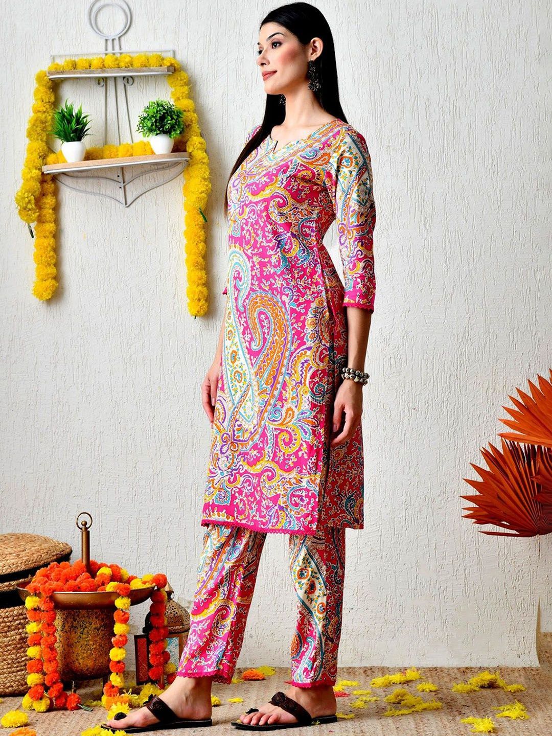 PRISCA Floral Printed Round Neck Straight Kurta With Trousers