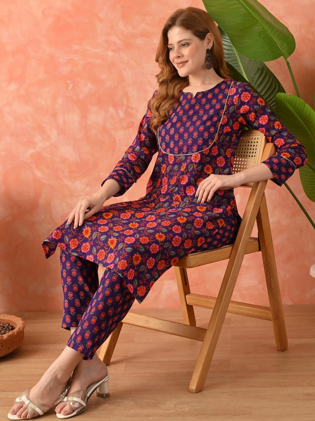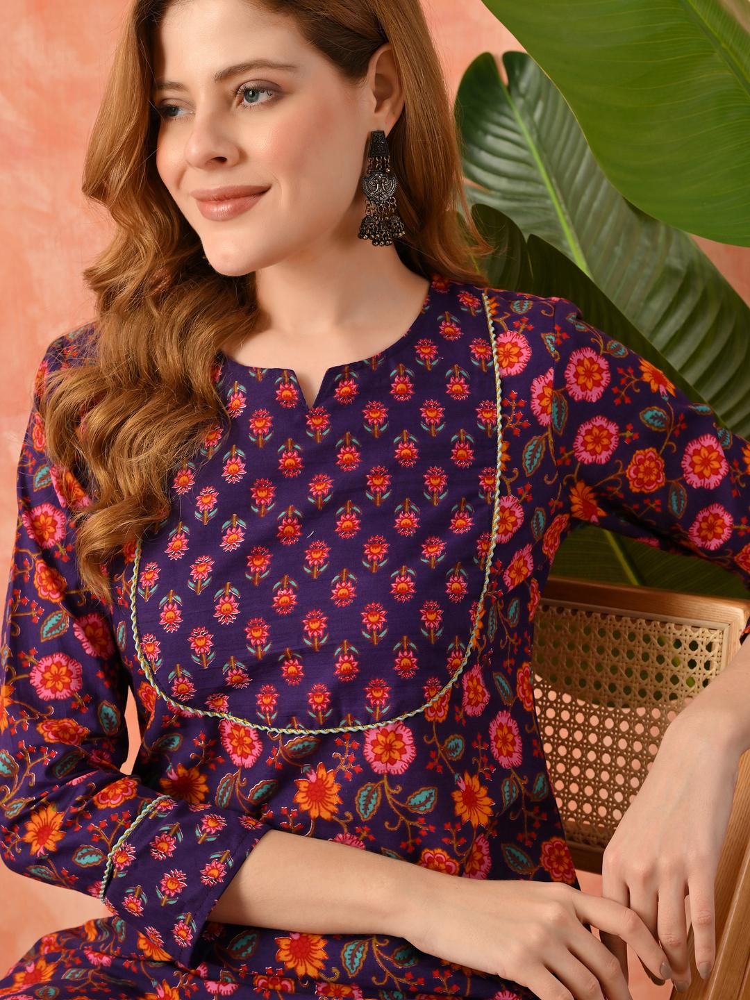 Buy this stylish PRISCA Women Multi Floral Printed Regular Three-Quarter Sleeves Pure Cotton Kurta Sets at Marincart Nepal. This product offers great quality and value. Perfect for those looking for the latest trends in fashion. Get yours now at unbeatable prices.