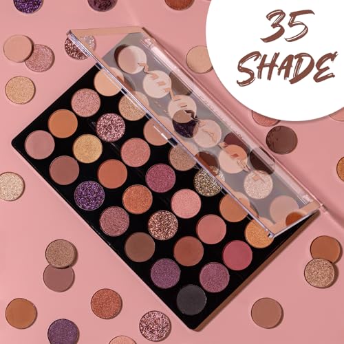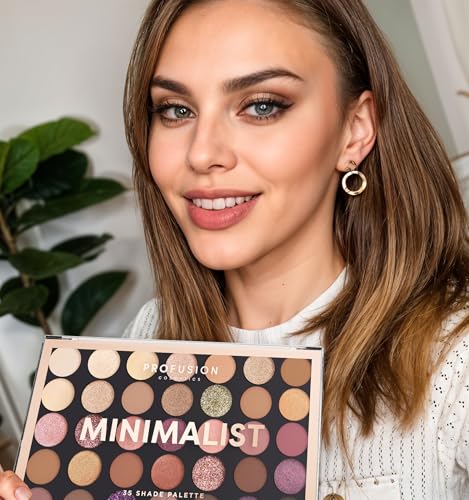Profusion Cosmetics Minimalist Eyeshadow Palette of 35 Shades, Get Creative with blendable Nude shades and Glitter finishes, Quality Nude Eyeshadow Palette - (36g)