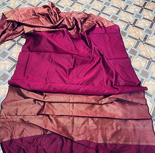 Pujia Mills womens kanjivaram pure banarasi silk saree kanchipuram saree (Wine)