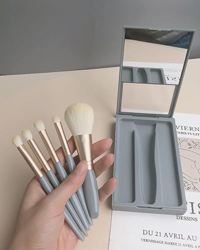 Compact Design: This 5-piece makeup brushes measures 5.7 cm x 3.5 cm x 0.9 cm and weighs just 0.24 kg, making it perfect for travel and on-the-go touch-ups. Versatile Brushes: The set includes a powder brush, foundation brushes for makeup eyeshadow brush, nose shadow brush, smudge brush, and detail brush to meet all your makeup needs. Soft Bristles: Each brush is crafted from soft synthetic fibres for smooth, even coverage and blending makeup brush set with box. Comfortable Grip: The brushes feature sleek ABS handles for a comfortable grip during application eyeshadow brush set. Built-in Mirror: The compact case includes a built-in mirror for easy makeup application on-the-go.mini makeup kit for travel makeup brush for women