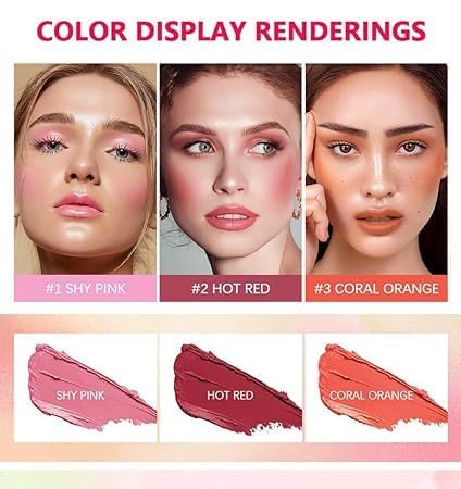 Creamy and Moisturizing Formula: Experience the smooth and hydrating texture of our tinted moisture on-the-go blush stick. It glides effortlessly onto your skin, leaving it moisturized and nourished while delivering vibrant pigmentation. Rotary Design: Easy to use, this cream blush could spin out like a lipstick, the compact design makes it more portable, the cheek stick is highly pigmented and easy to color. The portable blush stick is suitable for any occasion. All-in-one Convenience: This blush stick is a versatile product that can be used on your eyes, cheeks, and lips, providing a quick and easy solution to add a pop of color to your entire face. Waterproof and Long-lasting: Enjoy a waterproof and long-lasting finish with our cream blush stick. Whether you're facing a busy day, sweating at the gym, or dancing the night away, your blush will stay put, giving you a fresh and radiant look that lasts. Buildable and Customizable Tint: Achieve the perfect intensity by easily building up the color with our multi-use makeup stick. From a sheer natural flush to a more intense and bold shade, the stick blush allows you to customize your look according to your preferences. Travel-friendly and Mess-free: The unique design of the mini makeup stick makes it ideal for on-the-go touch-ups. With its twist-up mechanism, you can avoid any mess or spillage, ensuring a hassle-free application wherever you are.