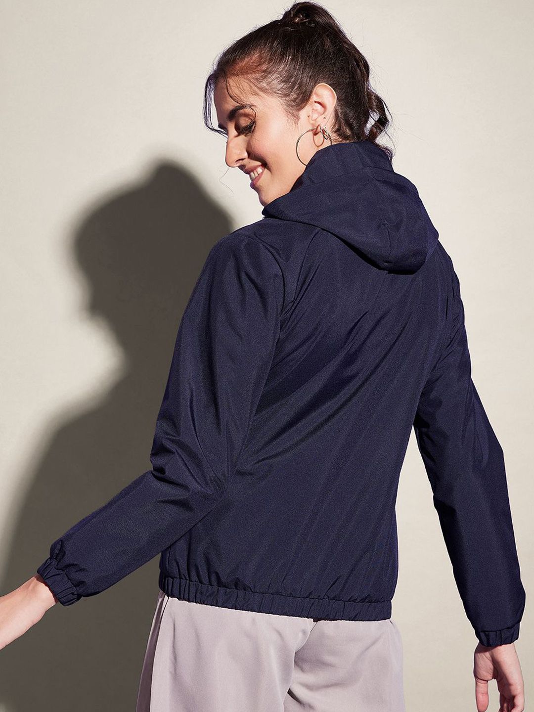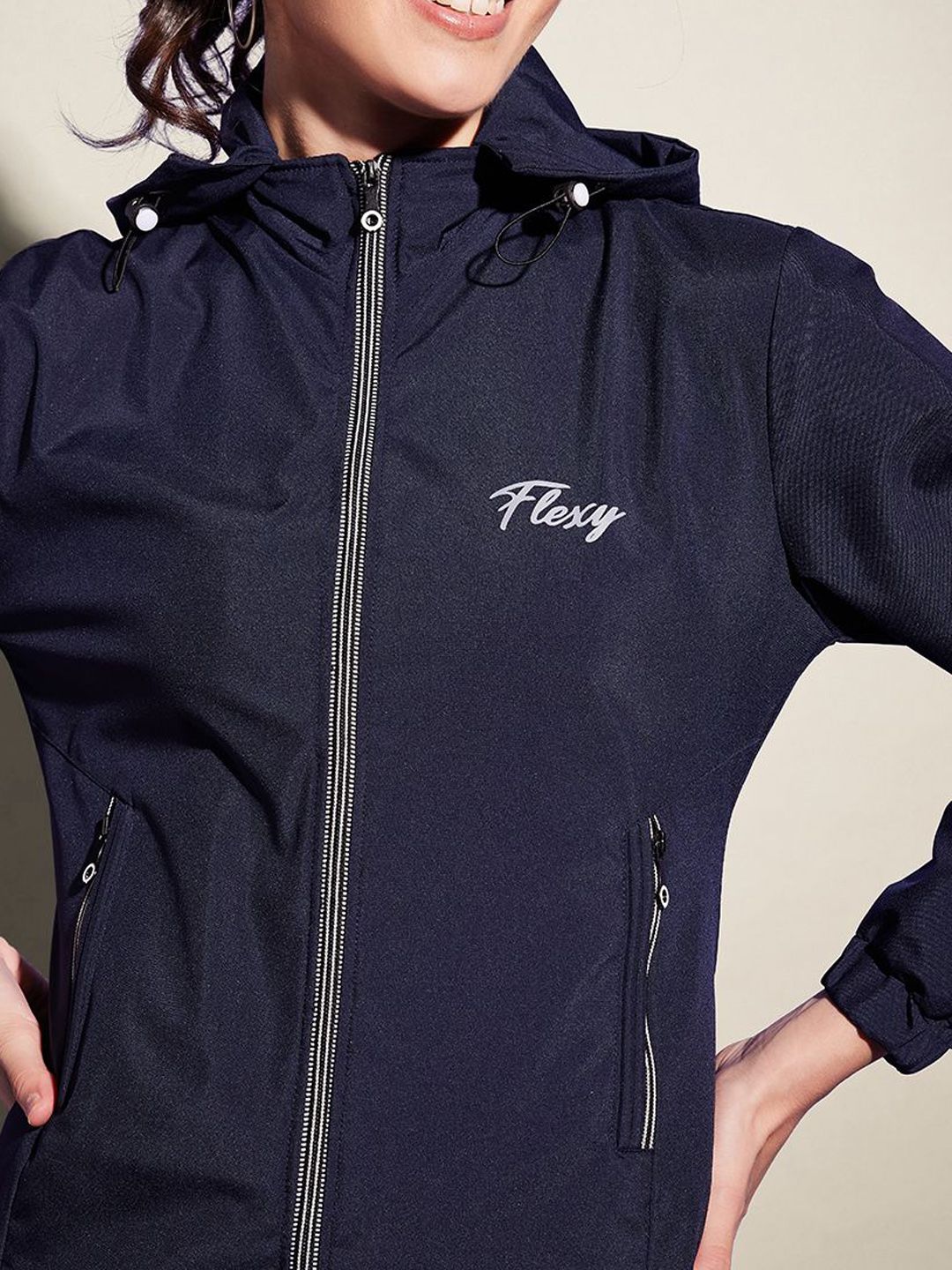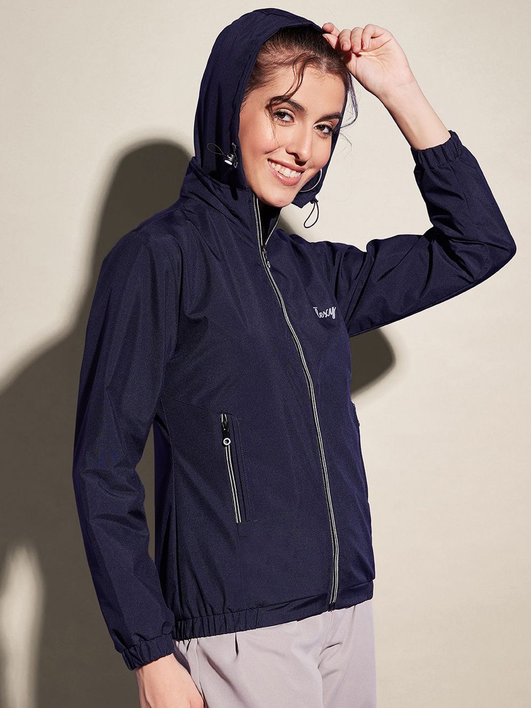 QIOA Women Hooded Solid Windcheater Sporty Jacket