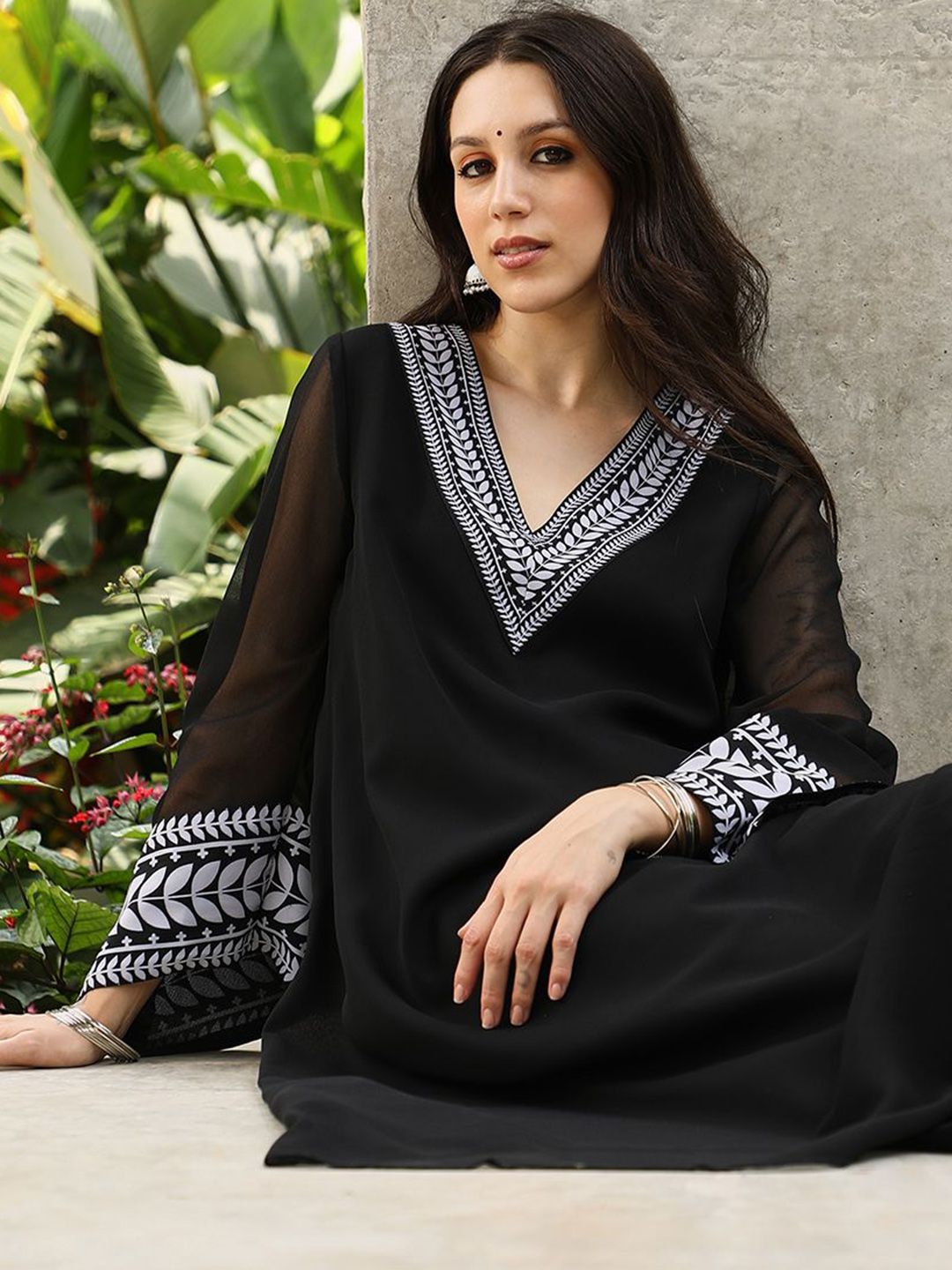 QISSA Women Ethnic Motifs Printed Regular Kurta with Trousers