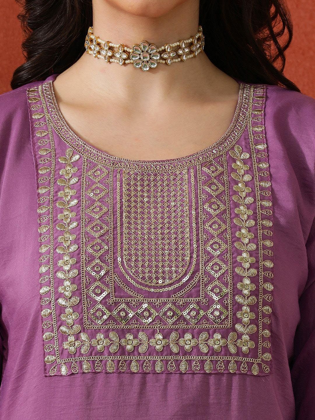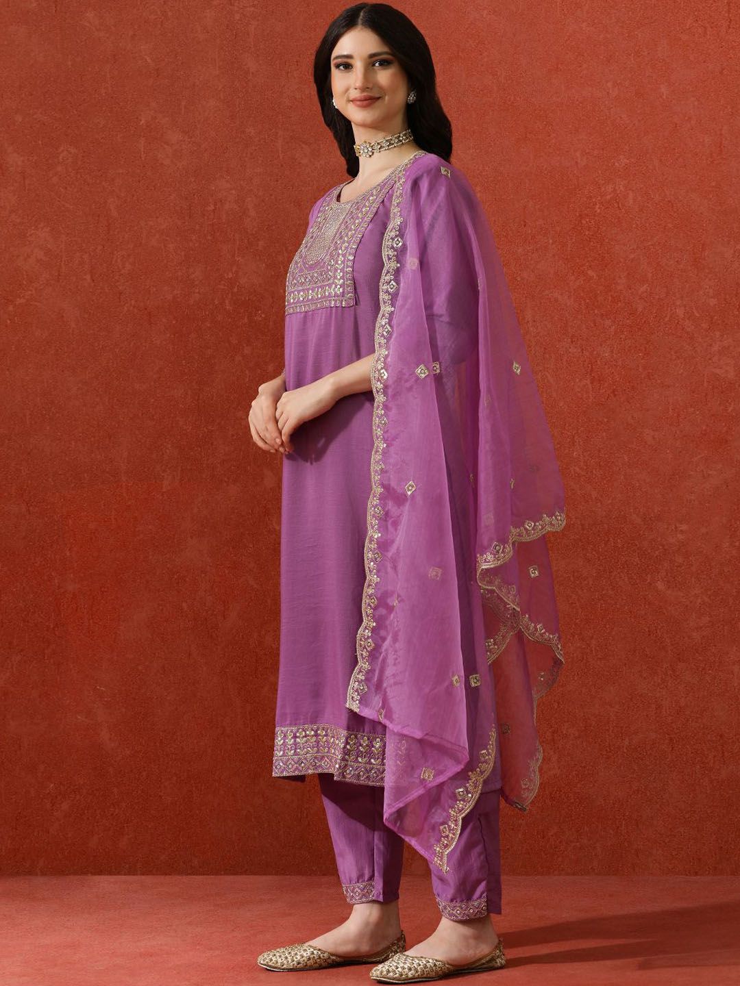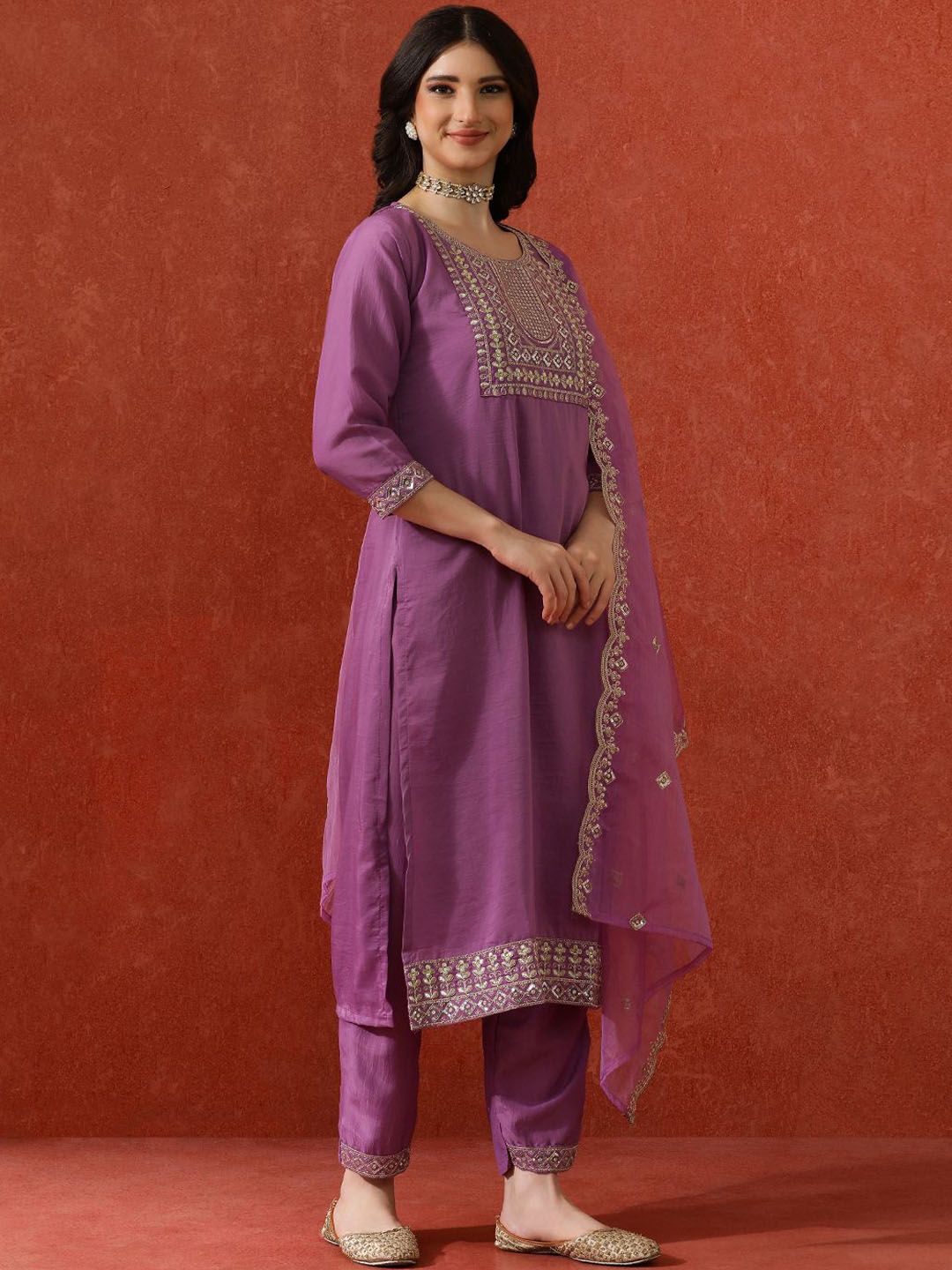 QSH Embroidered A-Line Festive Solid Kurta & Trousers With Dupatta