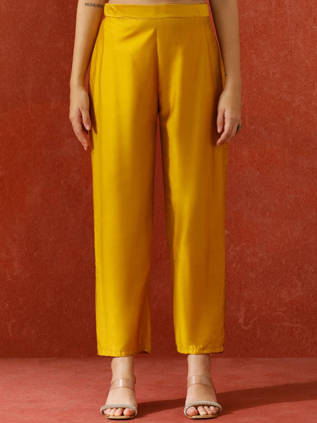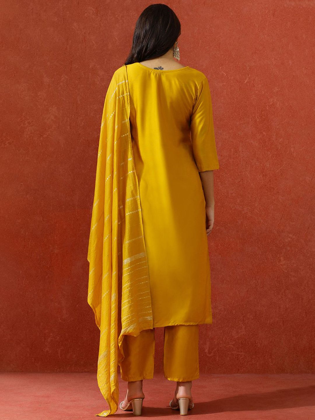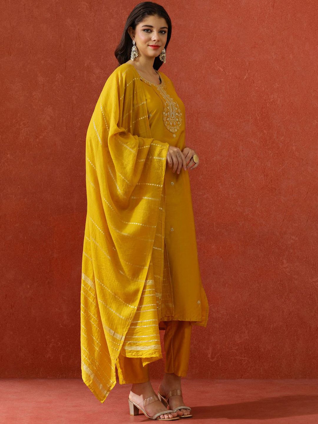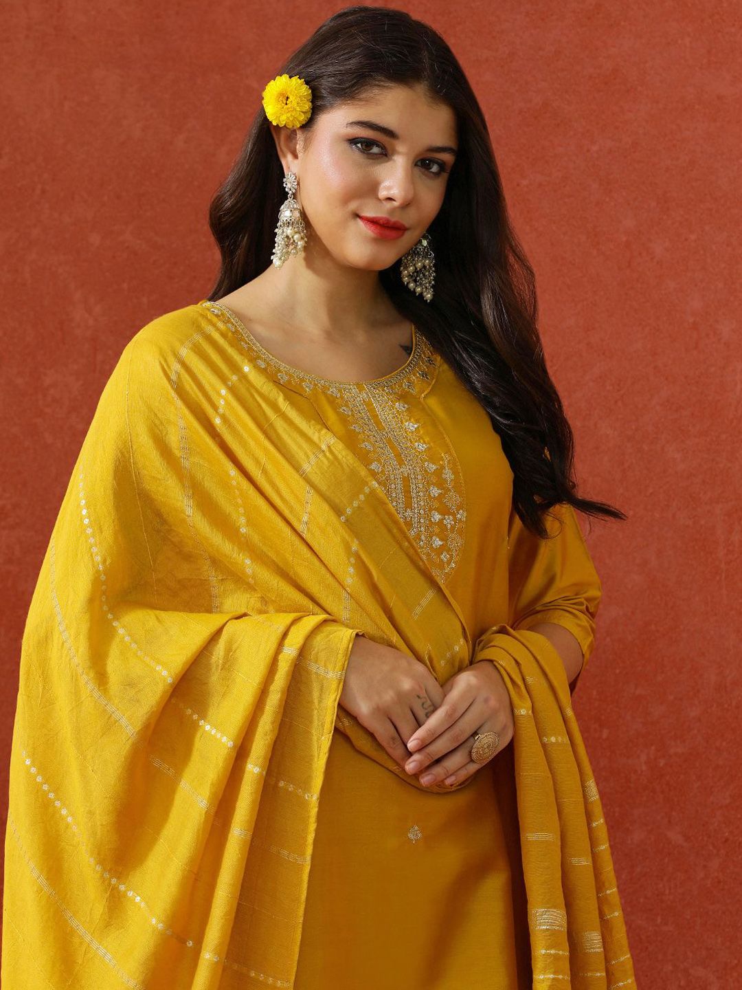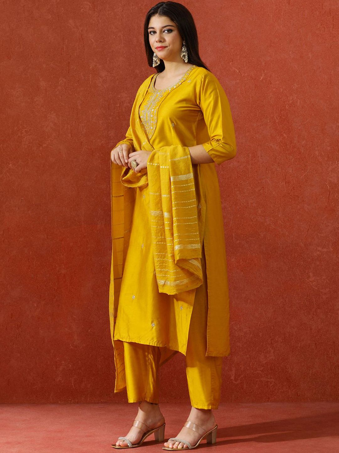 QSH Embroidered A-Line Solid Festive Kurta & Trousers With Dupatta