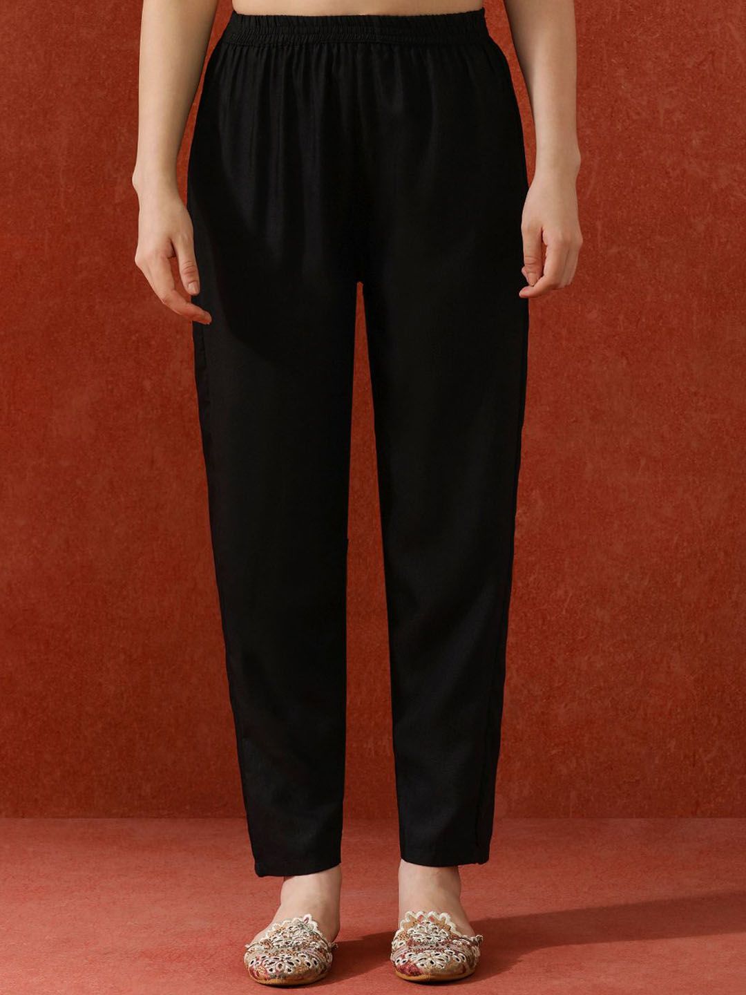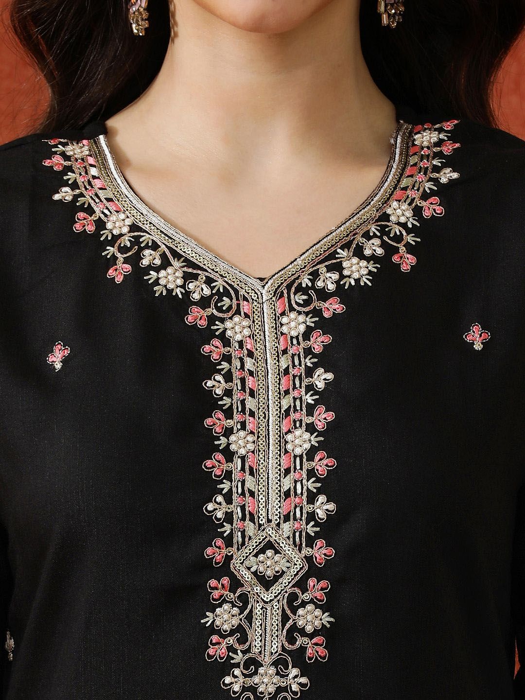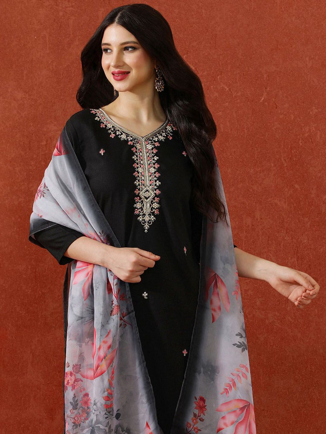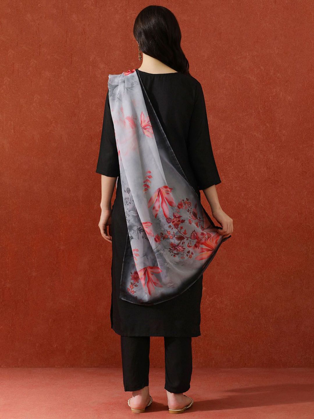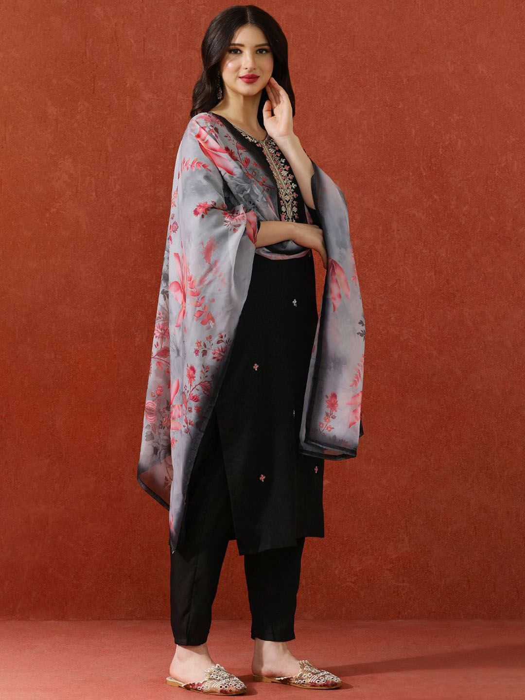 QSH Embroidered A-Line Solid Festive Kurta & Trousers With Dupatta